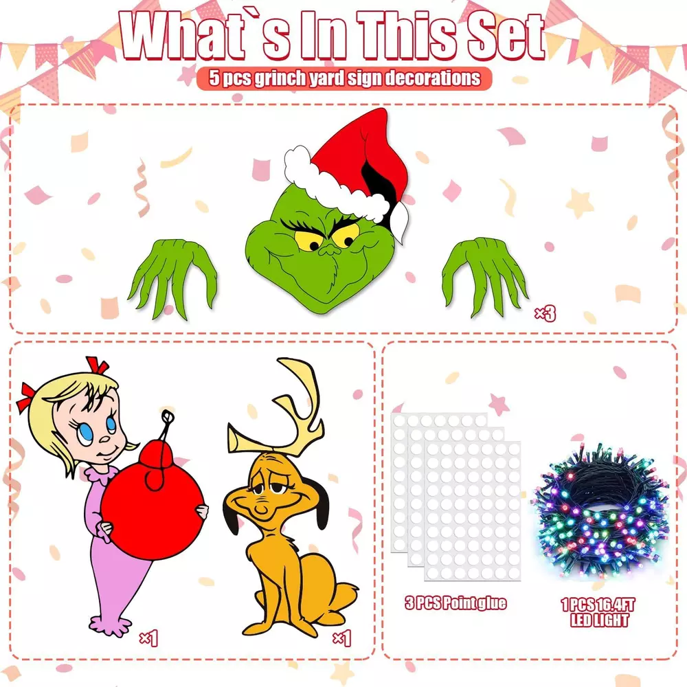 【valuable pack】christmas decorations with lights: you will receive 5pcs christmas decorations fence peekers with led lights, including a length of 2pc 16.5 feet led lights. soft warm led lights add a fun and festive feeling, and bring a strong warm festive atmosphere to your home, perfect for outdoor or indoor christmas decorations. 【material】: our christmas decorations outdoor fence yard signs are printed on corrugated plastic, not easily damaged or faded. the string lights are powered by 2 x aa batteries(not included), no plug needed, low voltage, and safe to touch. these outside signs with lights will stand up to most weather conditions, are durable for outdoor use, and can last the whole holiday season. please prevent the battery box from raining. 【wide application】: these christmas yard signs with string lights are perfect for christmas decoration outdoors and are ideal decor for fence, yard, garden, wall, fireplace, window, patio, porch, etc, it is also a perfect christmas tree topper choice. besides, it can be given as a nice christmas gift for your family and neighbors. 【easy to assemble】: Each Christmas sign has two plastic stakes and foam glue, you can use the foam glue to stick on the back of the signs and paste it where you want, or insert the plastic stakes into the hole of the sign. The Christmas string lights can be bent to any shape you want. You can insert the Christmas sign anywhere you want, then put the string on the signs. 【service】: we not only achieve the perfect christmas decorations outdoor fence peeker with led lights products, but we also will not slack in after-sales service, we will provide you with the most complete after-sales service if you are not satisfied with the product, and we will try our best to solve the problem.