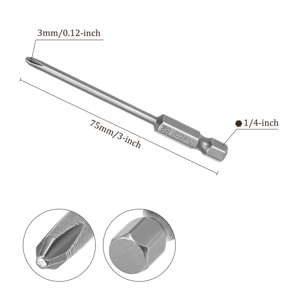 Document APPLICATION- Fit for electric screwdriver, manual screwdriver, power drill and other pneumatic or power tools with 1/4" hex holder. Widely used in cars, trucks, engines, motorcycles, computers, cable boxes and other applications.ABOUT THIS PRODUCT- Made of S2 alloy steel, which is a commonly used material in hardware with high hardness.- Sandblasting surface, corrosion resistance and durability.- Magnetic tip, can suck the screws easily when used it.- Exquisite workmanship, each edge can be accurately locked screws, no damage to the screw, and the screwdriver head.SPECIFICATIONBit Type: PH1Tip Diameter: 3mm / 0.12“Shank: 1/4“ Hex ShankLength: 75mm / 3”Material: S2 Alloy SteelFinish: SandblastingPackage: 5 packs of Cross Head Screwdriver BitTAKE NOTICE OF- Do not turn the screws with mismatched size to avoid damage to both the screw and the drill. 5pcs Phillips Screwdriver Bit - [3" x H1/4 x 3mm x PH1] Magnetic for Power Tool APPLICATION - Fit for electric screwdriver, manual screwdriver, power drill and other pneumatic or power tools with 1/4" hex holder. Widely used in cars, trucks, engines, motorcycles, computers, cable boxes and other applications. ABOUT THIS PRODUCT - Made of S2 alloy steel, which is a commonly used material in hardware with high hardness. - Sandblasting surface, corrosion resistance and durability. - Magnetic tip, can suck the screws easily when used it. - Exquisite workmanship, each edge can be accurately locked screws, no damage to the screw, and the screwdriver head. SPECIFICATION Bit Type: PH1 Tip Diameter: 3mm / 0.12“ Shank: 1/4“ Hex Shank Length: 75mm / 3” Material: S2 Alloy Steel Finish: Sandblasting Package: 5 packs of Cross Head Screwdriver Bit TAKE NOTICE OF - Do not turn the screws with mismatched size to avoid damage to both the screw and the drill. Hot Item Payment 1.We accept eBay payment . 2.Payment must be received within 7 business days of auction closing. Shipping 1.We ship to your eBay or Paypal address. Please make sure your eBay and Paypal address is correct before you pay. 2.Items will be shipped within 1-3 business day when we received payment. 3.Delivery time depends on destination and other factors. Description Policy 5pcs Phillips Screwdriver Bit - [3" x H1/4 x 3mm x PH1] Magnetic for Power Tool APPLICATION - Fit for electric screwdriver, manual screwdriver, power drill and other pneumatic or power tools with 1/4" hex holder. Widely used in cars, trucks, engines, motorcycles, computers, cable boxes and other applications. ABOUT THIS PRODUCT - Made of S2 alloy steel, which is a commonly used material in hardware with high hardness. - Sandblasting surface, corrosion resistance and durability. - Magnetic tip, can suck the screws easily when used it. - Exquisite workmanship, each edge can be accurately locked screws, no damage to the screw, and the screwdriver head. SPECIFICATION Bit Type: PH1 Tip Diameter: 3mm / 0.12“ Shank: 1/4“ Hex Shank Length: 75mm / 3” Material: S2 Alloy Steel Finish: Sandblasting Package: 5 packs of Cross Head Screwdriver Bit TAKE NOTICE OF - Do not turn the screws with mismatched size to avoid damage to both the screw and the drill. Hot Item Payment 1.We accept eBay payment . 2.Payment must be received within 7 business days of auction closing. Shipping 1.We ship to your eBay or Paypal address. Please make sure your eBay and Paypal address is correct before you pay. 2.Items will be shipped within 1-3 business day when we received payment. 3.Delivery time depends on destination and other factors.