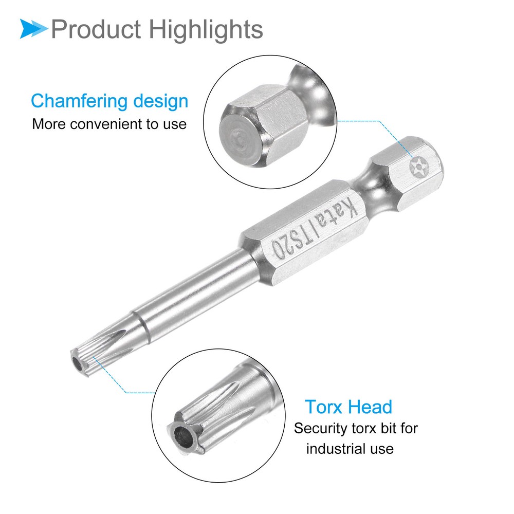 Document Attributes:* Material: S2 Alloy Steel* Size: T20* Hex Shank: 1/4"* Total Length: 50mm / 2"What Is Included:* 5 Pieces x Magnetic Security BitApplications & Features:--- Screwdriver bits set can be used in furniture installation, car maintenance, electronic factory, office installation, kitchen installation, etc.--- The magnetic bit tip can hold the screw securely before installation and after removing the screw to improve efficiency.--- Security bits are made of S2 alloy steel, with good toughness, the surface of the security torx bit set is nickel plating treatment for good anti-rust and wear-resistant and durability, and is suitable for industrial use.Useful Tips:--- Do not turn the screws with mismatched sizes to avoid damage to both the screw and the drill. 5pcs Magnetic Torx Bits T20 S2 Steel 5 Point Star Screwdriver Bits Attributes: * Material: S2 Alloy Steel * Size: T20 * Hex Shank: 1/4" * Total Length: 50mm / 2" What Is Included: * 5 Pieces x Magnetic Security Bit Applications & Features: --- Screwdriver bits set can be used in furniture installation, car maintenance, electronic factory, office installation, kitchen installation, etc. --- The magnetic bit tip can hold the screw securely before installation and after removing the screw to improve efficiency. --- Security bits are made of S2 alloy steel, with good toughness, the surface of the security torx bit set is nickel plating treatment for good anti-rust and wear-resistant and durability, and is suitable for industrial use. Useful Tips: --- Do not turn the screws with mismatched sizes to avoid damage to both the screw and the drill. Hot Item Payment 1.We accept eBay payment . 2.Payment must be received within 7 business days of auction closing. Shipping 1.We ship to your eBay or Paypal address. Please make sure your eBay and Paypal address is correct before you pay. 2.Items will be shipped within 1-3 business day when we received payment. 3.Delivery time depends on destination and other factors. Description Policy 5pcs Magnetic Torx Bits T20 S2 Steel 5 Point Star Screwdriver Bits Attributes: * Material: S2 Alloy Steel * Size: T20 * Hex Shank: 1/4" * Total Length: 50mm / 2" What Is Included: * 5 Pieces x Magnetic Security Bit Applications & Features: --- Screwdriver bits set can be used in furniture installation, car maintenance, electronic factory, office installation, kitchen installation, etc. --- The magnetic bit tip can hold the screw securely before installation and after removing the screw to improve efficiency. --- Security bits are made of S2 alloy steel, with good toughness, the surface of the security torx bit set is nickel plating treatment for good anti-rust and wear-resistant and durability, and is suitable for industrial use. Useful Tips: --- Do not turn the screws with mismatched sizes to avoid damage to both the screw and the drill. Hot Item Payment 1.We accept eBay payment . 2.Payment must be received within 7 business days of auction closing. Shipping 1.We ship to your eBay or Paypal address. Please make sure your eBay and Paypal address is correct before you pay. 2.Items will be shipped within 1-3 business day when we received payment. 3.Delivery time depends on destination and other factors.