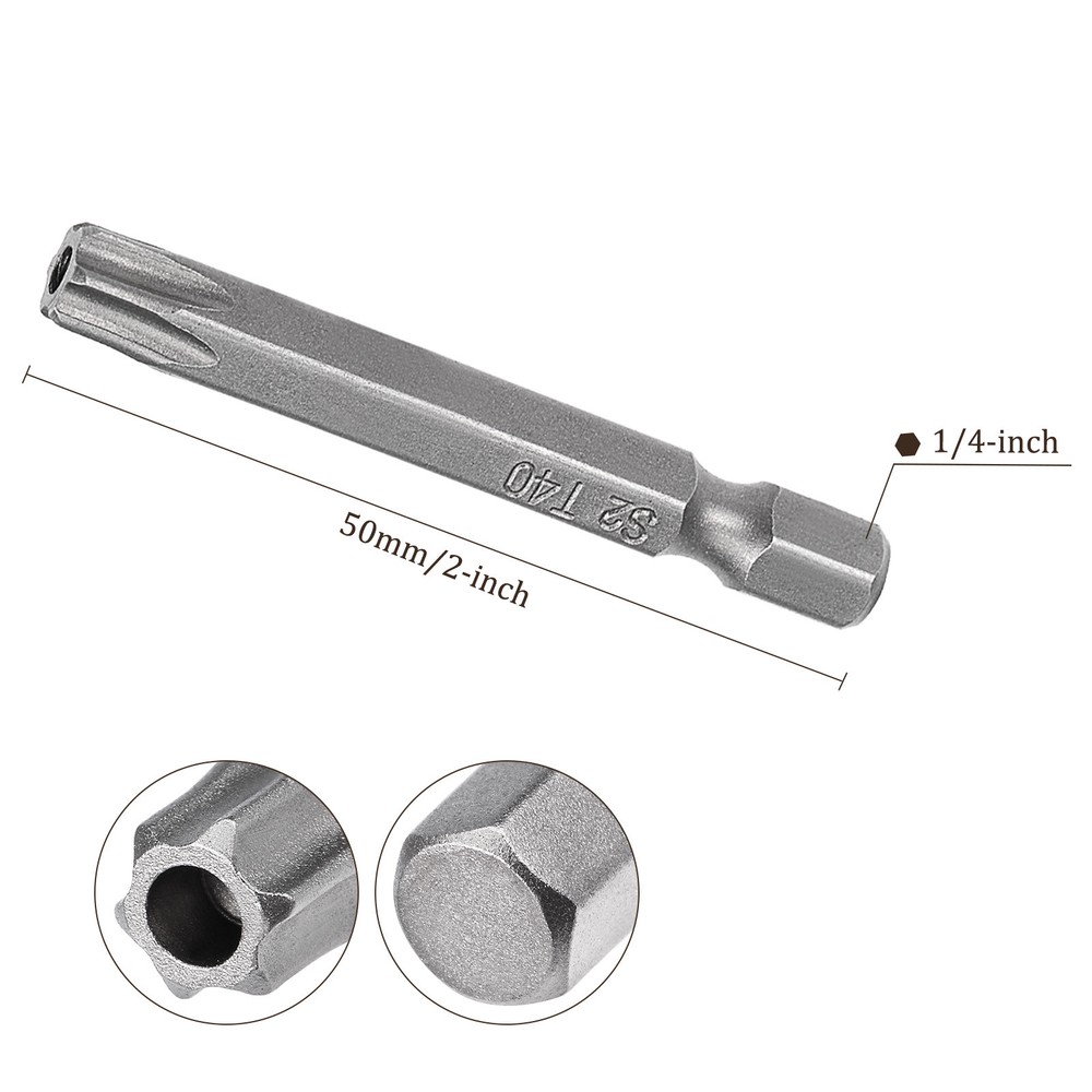 Document APPLICATION- Fit for electric screwdriver, manual screwdriver, power drill and other pneumatic or power tools with 1/4" hex holder. Widely used in cars, trucks, engines, motorcycles, computers, cable boxes and other applications.ABOUT THIS PRODUCT- Made of S2 alloy steel, which is a commonly used material in hardware with high hardness.- Sandblasting surface, corrosion resistance and durability.- Magnetic tip, can suck the screws easily when used it.- The hole in the center of each bit causes it to be tamper resistant, designed to prevent Cam-Out the hex bits clicks onto most standard sockets, screwdrivers, drill/driver kits & Power tools attachments.- Exquisite workmanship, each edge can be accurately locked screws, no damage to the screw, and the screwdriver head.SPECIFICATIONBit Type: T15 Shank: 1/4“ Hex ShankLength: 50mm / 2”Material: S2 Alloy SteelFinish: SandblastingPackage: 5 packs of Tamper Proof Torx Screwdriver BitTAKE NOTICE OF- Do not turn the screws with mismatched size to avoid damage to both the screw and the drill. 5pcs Torx Screwdriver Bit - [2 Inch x H1/4 x T40] Magnetic for Power Tool Use APPLICATION - Fit for electric screwdriver, manual screwdriver, power drill and other pneumatic or power tools with 1/4" hex holder. Widely used in cars, trucks, engines, motorcycles, computers, cable boxes and other applications. ABOUT THIS PRODUCT - Made of S2 alloy steel, which is a commonly used material in hardware with high hardness. - Sandblasting surface, corrosion resistance and durability. - Magnetic tip, can suck the screws easily when used it. - The hole in the center of each bit causes it to be tamper resistant, designed to prevent Cam-Out the hex bits clicks onto most standard sockets, screwdrivers, drill/driver kits & Power tools attachments. - Exquisite workmanship, each edge can be accurately locked screws, no damage to the screw, and the screwdriver head. SPECIFICATION Bit Type: T15 Shank: 1/4“ Hex Shank Length: 50mm / 2” Material: S2 Alloy Steel Finish: Sandblasting Package: 5 packs of Tamper Proof Torx Screwdriver Bit TAKE NOTICE OF - Do not turn the screws with mismatched size to avoid damage to both the screw and the drill. Hot Item Payment 1.We accept eBay payment . 2.Payment must be received within 7 business days of auction closing. Shipping 1.We ship to your eBay or Paypal address. Please make sure your eBay and Paypal address is correct before you pay. 2.Items will be shipped within 1-3 business day when we received payment. 3.Delivery time depends on destination and other factors. Description Policy 5pcs Torx Screwdriver Bit - [2 Inch x H1/4 x T40] Magnetic for Power Tool Use APPLICATION - Fit for electric screwdriver, manual screwdriver, power drill and other pneumatic or power tools with 1/4" hex holder. Widely used in cars, trucks, engines, motorcycles, computers, cable boxes and other applications. ABOUT THIS PRODUCT - Made of S2 alloy steel, which is a commonly used material in hardware with high hardness. - Sandblasting surface, corrosion resistance and durability. - Magnetic tip, can suck the screws easily when used it. - The hole in the center of each bit causes it to be tamper resistant, designed to prevent Cam-Out the hex bits clicks onto most standard sockets, screwdrivers, drill/driver kits & Power tools attachments. - Exquisite workmanship, each edge can be accurately locked screws, no damage to the screw, and the screwdriver head. SPECIFICATION Bit Type: T15 Shank: 1/4“ Hex Shank Length: 50mm / 2” Material: S2 Alloy Steel Finish: Sandblasting Package: 5 packs of Tamper Proof Torx Screwdriver Bit TAKE NOTICE OF - Do not turn the screws with mismatched size to avoid damage to both the screw and the drill. Hot Item Payment 1.We accept eBay payment . 2.Payment must be received within 7 business days of auction closing. Shipping 1.We ship to your eBay or Paypal address. Please make sure your eBay and Paypal address is correct before you pay. 2.Items will be shipped within 1-3 business day when we received payment. 3.Delivery time depends on destination and other factors.