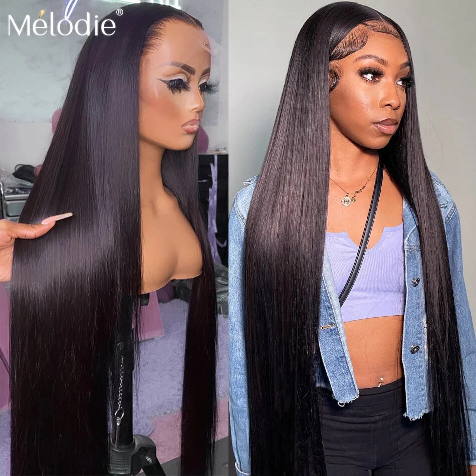 Melodie 250% HD 5x5 Glueless Ready To Wear Straight 13x6 Lace Frontal Human Hair Wigs 30 40 Inch Transparent 13x4 Lace Front Wig
