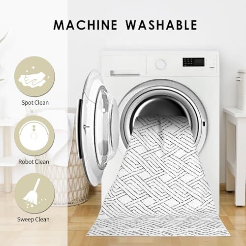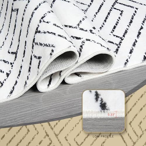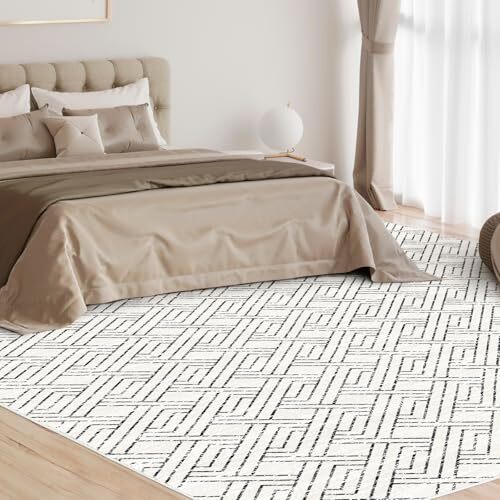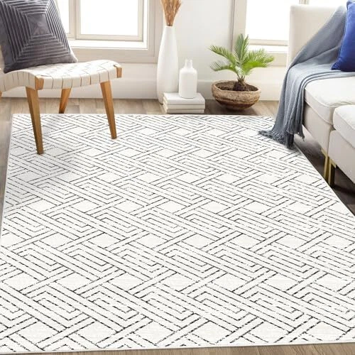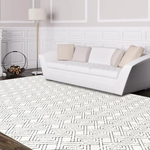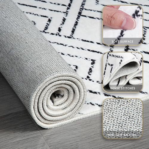 This rug is a game-changer! The black and white geometric design adds a modern touch to any room, and the soft, plush feel is amazing underfoot. Love that it’s machine washable—perfect for busy homes with kids or pets. The non-slip backing keeps it securely in place, and the fast delivery was a nice bonus. Highly recommend!