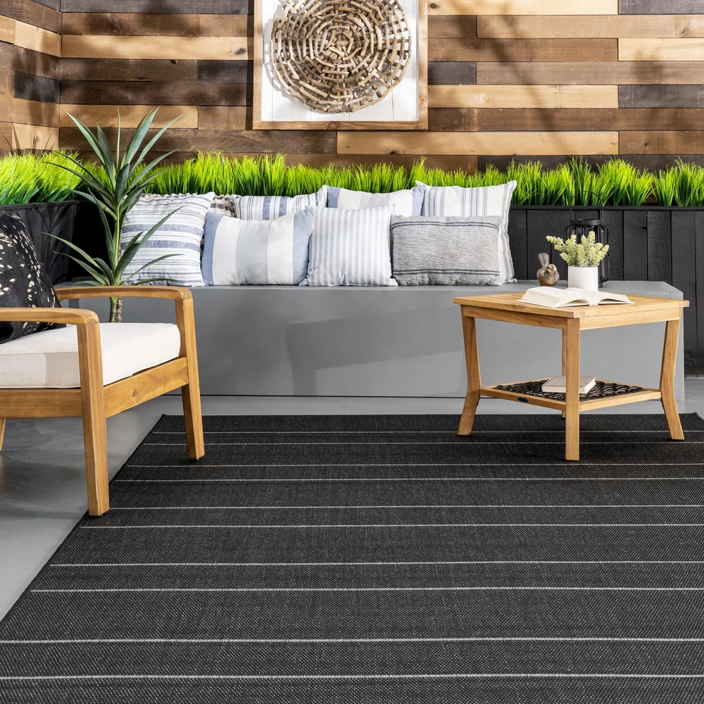 Whoever said beautiful floor accents are only for inside the home hasn’t yet met an indoor/outdoor rug. Each unit is designed to stand up to the elements while adding a touch of charm to your surroundings. These pieces are so versatile that you might find yourself using them around your home (don’t worry, they’re just as great for indoor use too!) Indoor/Outdoor Durable Materials: Our area rug is meticulously crafted from 100% Polypropylene and made in Belgium, ensuring exceptional quality. With this rug’s power-loomed construction, you can trust in its durability. Recommended Rooms: Transform your living room, kitchen, patio, deck, or porch with this stunning 5x8 indoor/outdoor Area Rug. This rug will turn any space into a personal oasis creating a soothing atmosphere in your living room or patio. Stylish & Versatile Design: This Striped Indoor/Outdoor rug boasts a captivating aesthetic. Its Striped pattern and unique prints bring a touch of flair to any room, ensuring lasting style in your living room, patio, or deck. Premium Quality and UV Resistant Rug: Our area rug ensures durability and long-lasting beauty when placed in any high traffic areas. This area rug is UV-resistant, durable and perfect for indoor or outdoor use. Sleek and Functional Pile Height: This Low pile of this area rug strikes a perfect balance between style and practicality. Our rug adds a sleek and sophisticated touch to your decor while remaining easy to clean and maintain. Versatile & Functional: This indoor/outdoor area rug measures 5x8 feet, making this rug the ideal choice for various room sizes. This rug makes the perfect centerpiece for your living room, patio, deck, or any room that could be elevated. Kid and Pet-Friendly Rug: Worried about spills or messes? With this synthetic fiber design, this area rug is engineered to withstand the demands of a busy household from to pets, giving you peace of mind letting you relax and enjoy your new rug. Weather and Stain-Resistant: Keep your indoor/outdoor rug looking pristine effortlessly. Its stain-resistant properties make cleaning your area rug a breeze, allowing you to maintain its beauty. This area rug is a great choice for outdoor spaces! Outdoor Rug Care Instructions: Easy to care for, simply shake out your outdoor rug to remove any light dirt or debris and spray your area rug with a hose for stubborn stains. This is the perfect patio rug or front porch rug to elevate your home. Enhance with a Rug Pad: Use an indoor/outdoor rug pad to prevent slipping and extend the life of your rug. It provides a powerful nonskid treated layer, aiding in protection while adding a layer of comfort.