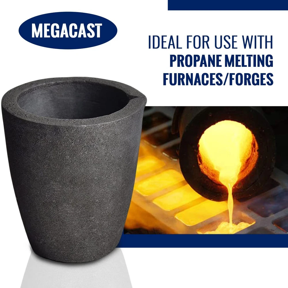 #6 12KG MegaCast, Foundry Clay Graphite Crucibles Black Cup Furnace Torch Melting Casting Refining Gold Silver Copper Brass Aluminum Product Details Brand: MegaCast Age Range (Description): Adult Material: Clay Item Weight: 2 Pounds Number of Items: 1 Included Components: clay Item dimensions L x W x H: 7 x 7 x 9.5 inches UPC Brand: MegaCast Age Range (Description): Adult Material: Clay Item Weight: 2 Pounds Number of Items: 1 Included Components: clay Item dimensions L x W x H: 7 x 7 x 9.5 inches UPC: 039294861813 Product Dimensions: 7 x 7 x 9.5 inches Item Weight: 2 pounds Manufacturer: MegaCast Country of Origin: India Item model number: 222-A36 Is Discontinued By Manufacturer: No Date First Available: August 17, 2017 Designed for Melting Gold, Silver, Copper, Brass, Aluminum and More! Outside Dimensions - 6.5" Dia. x 8" Length - Inside Dimensions - 5.5" Dia. x 7.25" Depth Torch Application - Designed to use with Fuel/Gas and Medium/ High Heat Induction Furnaces and Kilns They can be used with our propane melting furnaces as well as a standard torch method. Not for use in a Coal Foundry Clay Graphite Foundry Crucible, #6 12kg MegaCast Graphite Foundry Crucibles are made from a combination of graphite and clay, and are recommended for melting your precious, or non-precious metals and can handle large batches of material. Their thick inner walls can handle direct heat and open flame foundries. They can be used with our propane melting furnaces as well as a standard torch method. Rated to withstand temperatures up to1560°F - 2912°F - (850°C - 1600°C)..Not for use in a Coal Foundry,.Outside Dimensions - 6.5" Dia. x 8" Length - Inside Dimensions - 5.5" Dia. x 7.25" Depth Heavy Duty Crucible Tongs Available in our Amazon Store.