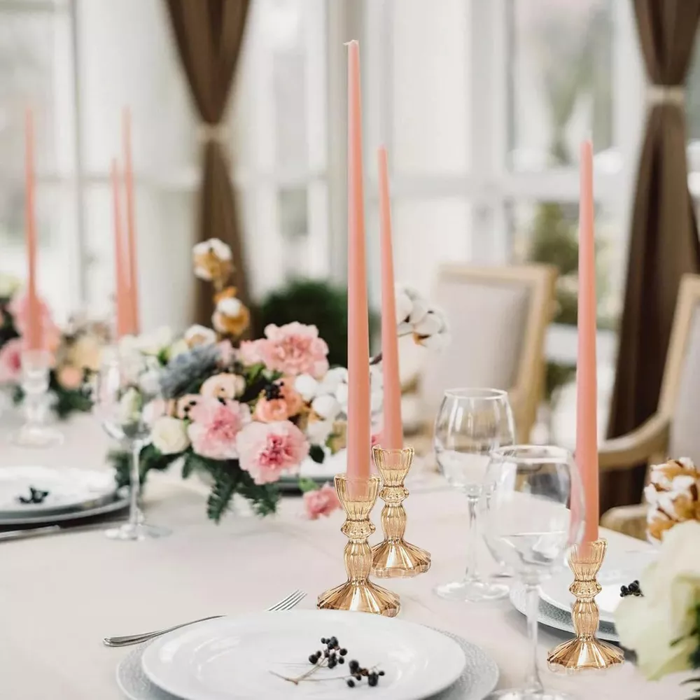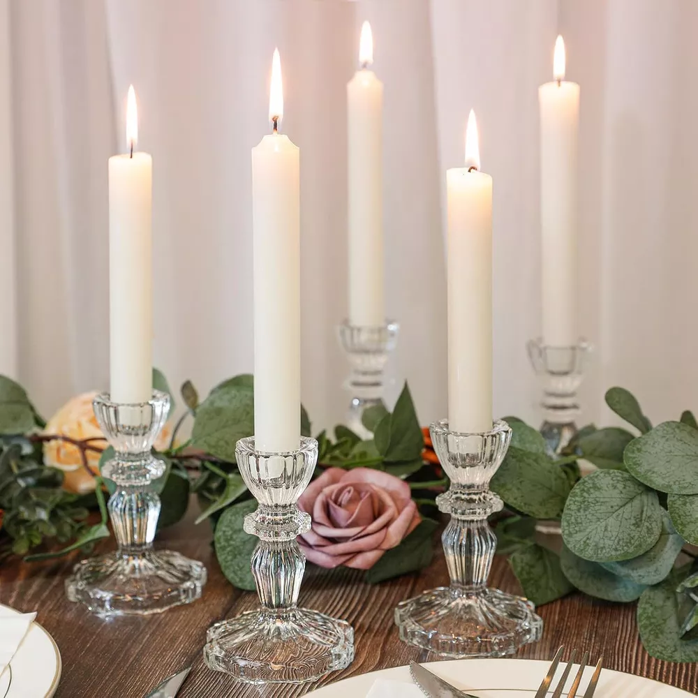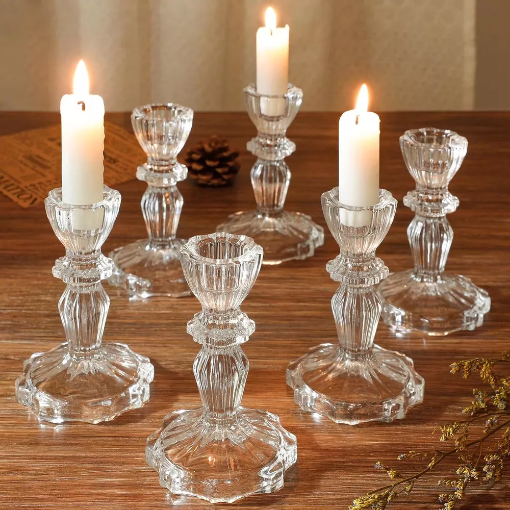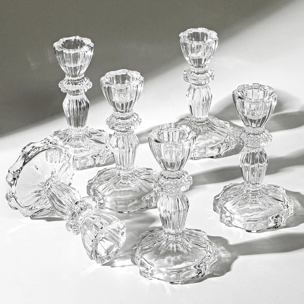 6 Clear Crystal Candle Holders for Glass Taper Holder Decor for Wedding Birthday