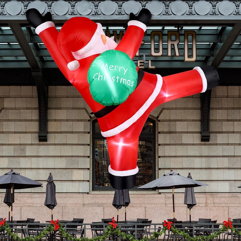 Features: Christmas Santa inflatable is made of waterproof polyester fabric, reliable and long lasting, which is waterproof and weatherproof, LED lights can light up the Christmas garden, for a long lasting using. The blow up Santa Claus is ideal decoration for Christmas, indoor, outdoor, front door, courtyard, lawn, garden, parties, restaurants, cafes, shops, roof, window, door, etc., it will bring everyone a wonderful and unforgettable memory. Specifications: Material: waterproof polyester fabric Color: black, red green, white Size: 5.9 ft in height Package includes: 1 x Christmas Santa inflatable 1 x Blower fan 1 x Adaptor plug 1 x Manual 1 x Rope 5 x LED light Notes: Manual measurement, please allow slight errors on size. The color may exist a slight difference due to different screen displays. Winding risk may exist, please keep our product away from children. Package Include: you will receive 5.9 feet height hanging Christmas Santa Claus inflatables, 5 LED lights, 1 blower fan with a working current voltage of 12V/0.8A, standard adaptor plug, manual and ropes; You just need to connect your blower fan to your Christmas inflatable and plug it in, cute inflatable Santa will show up in minutes Quality Material: this blow up hanging Santa is made of waterproof polyester fabric, reliable and long lasting, which is waterproof and weatherproof, non fading and well sewn, you don't need to worry about tearing or holes, LED lights can light up the garden, for a long lasting using Special Design: the inflatable Santa Claus climbing is different from general inflatable decorations, our large Christmas inflatable can be tied in many places, let you have a Christmas different from the past and the whole neighborhood can see and enjoy, creating a warm and fun atmosphere Easy to Use: this Christmas inflatable outdoor decoration is easy to use, plug in the power supply to inflate, using the rope to tie Santa Claus anywhere you want, easy to disassemble, easy to deflate and store, can be placed in any corner; Please make sure the blower fan is facing up when inflating because facing the ground will affect the inflation effect Practical Decorations: the blow up Santa Claus is ideal decoration for Christmas, indoor, outdoor, front door, courtyard, lawn, garden, parties, restaurants, cafes, shops, roof, window, door, etc., it will bring everyone a wonderful and unforgettable memory