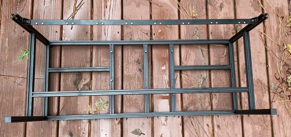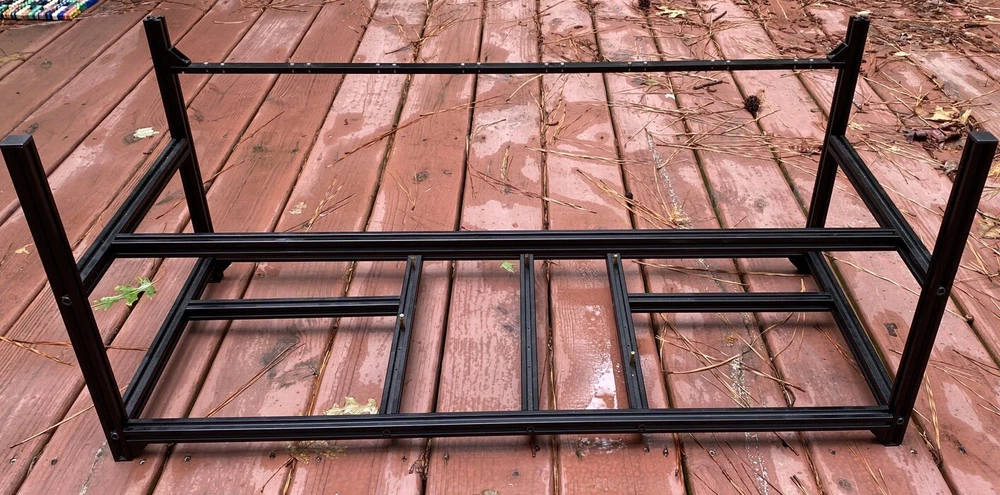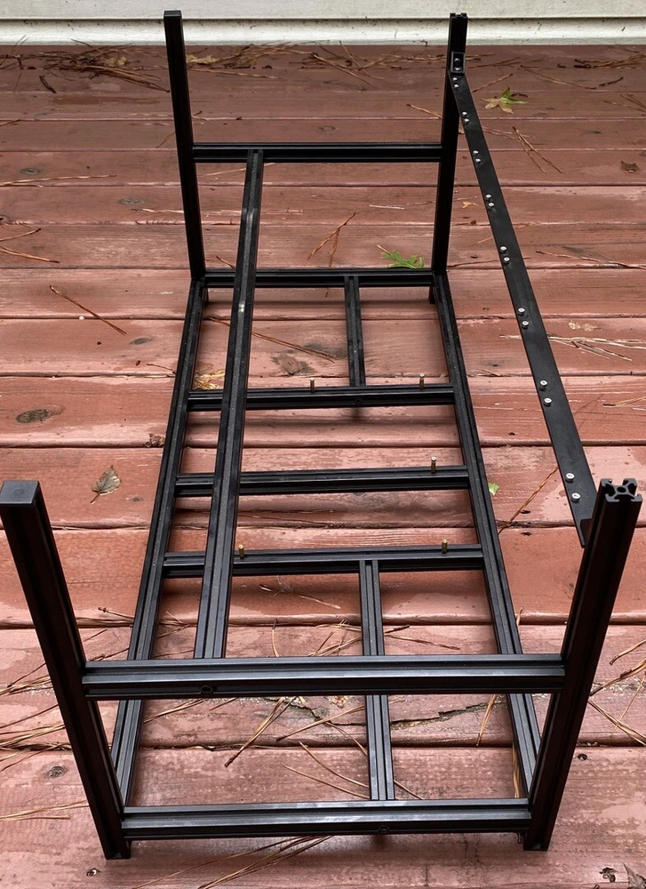 Used mining frame, comes with standoffs for motherboard and 4 pcie risers. Dimensions are 14"x35"x 15". I will disassemble it for shipping.