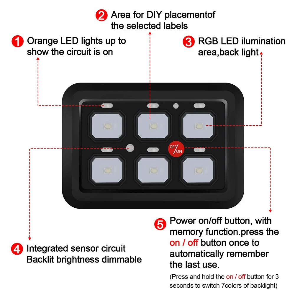You may also like For Range Rover L405 L462 L494 Vogue Sport Steering Wheel Control Button Upgrade 147.99 USD 1.99 USD Window Digital Switch & Steering Wheel Control Button Set For Range Rover L405 267.99 USD 1.99 USD RGB 12 Gang Switch Panel LED Light Circuit App & Remote Control Marine Boat ATV 159.99 USD Free shipping 2 Gang 4.8 Amp Rocker Switch Panel USB Charger Voltmeter Waterproof Car Boat RV 17.99 USD 1.99 USD 10-Speed LED Panel Switching Voltmeter DC/AV Main Control Panel for Car Boat 12V 77.99 USD Free shipping 12 Gang RGB bluetooth Multifunction Switch Panel LED Relay System Kit 12-24V 139.99 USD Free shipping 4 Gang Switch Panel LED Light Bar Circuit Control Box For Car Boat Marine 12/24V 79.99 USD Free shipping 8 Gang APP Switch Panel RGB Wireless Bluetooth Circuit Relay Control LED Light 139.99 USD Free shipping L494 L405 Car Window Lift Control Button For Range Rover Sport Vogue 2014-2017 145.99 USD Free shipping 12V 80A Rocker Switch Box Emergency Strobe Light 6-Gang Toggle Controller Panel 30.99 USD Free shipping 10 Gang Waterproof LED Touch Switch APP Remote Control Slim Panel RV Yacht 60A 135.99 USD Free shipping 6 Gang QC 3.0 Rocker Switch Panel Box 12V SPST On/Off USB Charger Voltmeter 58.99 USD 1.99 USD Product Description Specification: Housing Material: High quality aluminum Input Voltage: 12V DC Maximum Power: 720W Maximum Current: 60A Switch operation: On - Off With/without light sensor: Yes Operating Temperature: - 40° C ~ + 105° C Features: * Multi-position installation and wide application. with different brackets, it can be installed in any position you like. * Universal 6 switch panel relay system. power up to 6 lights & accessories from one convenient place. * Customize your own panel, with 50 universal switch stickers, you can customize your unique personal switch panel according to certain needs. * All in one design for your ultimate convenience. This kit has everything you need for installation and use. No need to buy extra parts. * Attomatic Dimmable for Driving Safer. * On the road or other bright places, the switch panel will be brighter, so you can see it clearly. * In the tunnel or other dark places, the switch panel will be dim, reduce the impact on the driver's vision Packing included: 1 * Set of 6 Gang on-off Control Switch Panel Payment Shipping Returns Contact Us Feedback Here is a detailed description of the Payment policy. For Buy It Now item, an immediate payment is required (best offer items excluded). For Auction items, please paid within 5 days. We ship worldwide. Item will be shipped out 1 business day by Singpost after full payment received. Delivery Time: USA ------------------------------- 8-15 working days by China Epacket delivery. Australia ------------------------ 7-12 working days by AUpost-eparcel from China. UK/ Canada -------------------- 10-28 working days Europe -------------------------- 18-28 working days Italy/ South America ------ 28-40 working days We must exchange the item(s) within 7 days after you received it. Returns must have all original packaging and accessories. Opened or damaged merchandise are not eligible for returns/exchanges. Please allow up to 10 business days for returns to be processed. Shipping and handling charges are not refundable. 1 year manufactured warranty on all products, Warranty period starts from the date of purchase. Buyers need to responsible to pay for the returning package, pls make sure before you bid. For all orders, please note that: 1. Taxes and charges are not included in the item price or shipping charges. 2. Please check with your country's customs office to determine what these additional costs will be prior to bidding/buying. 3. If there is the cutsom fee casused by the cutsom detention, the buyer need to check with your country's customs and deal with it himself. If the item is defective or taking longer than usual to reach you, please do not leave us negative feedback. Send us a message through eBay and we will resolve the issue promptly. Thanks for your support and understanding! :) OUR WORKING Time(Beijing): 9:00am~6:00pm(Monday~Friday) If you have any questions, please contact us via ebay mail, we will reply you on the working day in China, and there will be no reply on the weekend, we will reply on Monday. Because the time zone between the seller and the buyer is different, please be patient and wait for your understanding. We will be happy to serve you. Dear Buyer, We appreciate your business, if you are satisfied with our service, please leave us a positive feedback and rate the details of the transaction (Detailed Seller Ratings) with a PERFECT 5 STARS . Our goal is to make sure you are happy and have a pleasant shopping experience with us. Please email us before leaving any 1 or 2 ratings, neutral and negative feedback or open any ebay or paypal dispute. We will do our best to resolve the issues. Please give us the opportunity to resolve any problem. It is impossible to address issues if we do not know about them ! Payment Here is a detailed description of the Payment policy. For Buy It Now item, an immediate payment is required (best offer items excluded). For Auction items, please paid within 5 days. Shipping We ship worldwide. Item will be shipped out 1 business day by Singpost after full payment received. Delivery Time: USA ------------------------------- 8-15 working days by China Epacket delivery. Australia ------------------------ 7-12 working days by AUpost-eparcel from China. UK/ Canada -------------------- 10-28 working days Europe -------------------------- 18-28 working days Italy/ South America ------ 28-40 working days Returns We must exchange the item(s) within 7 days after you received it. Returns must have all original packaging and accessories. Opened or damaged merchandise are not eligible for returns/exchanges. Please allow up to 10 business days for returns to be processed. Shipping and handling charges are not refundable. 1 year manufactured war