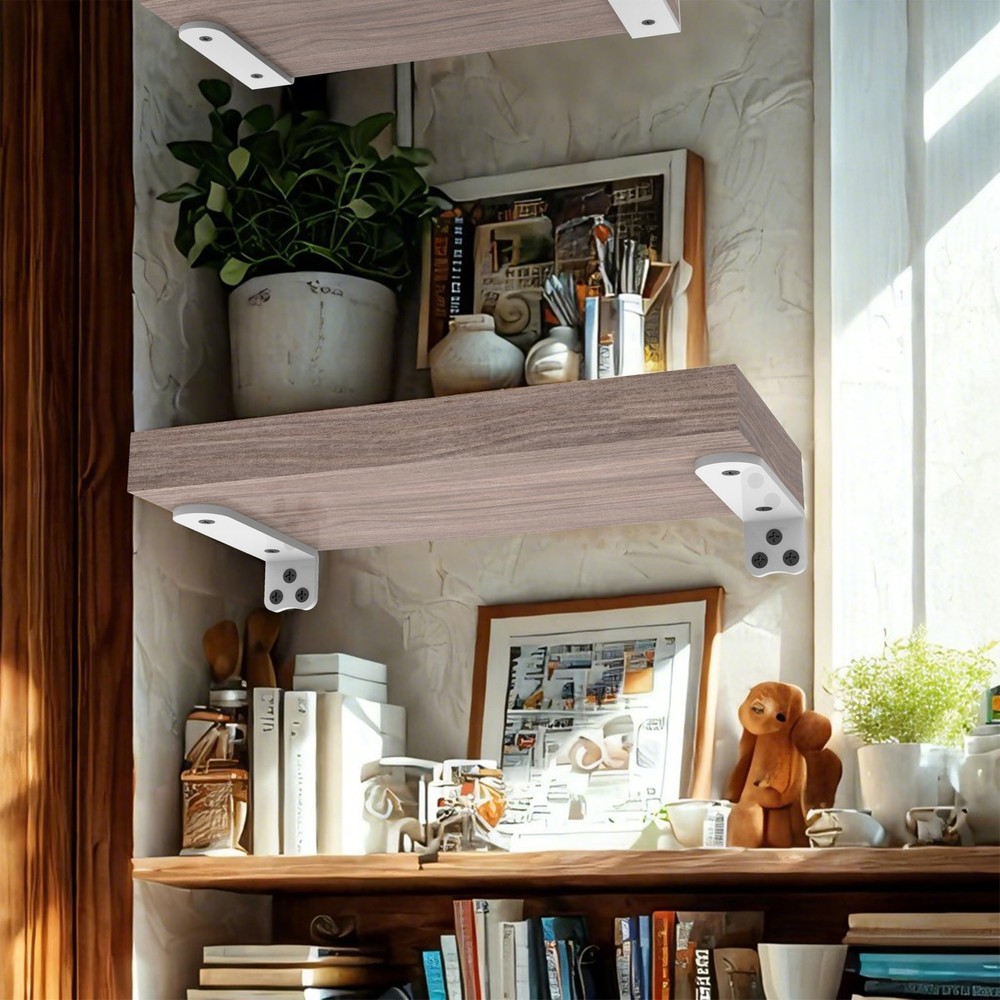 Just got these shelf brackets and I'm impressed! They're super sturdy—holds over 160 lbs with no sagging. Love the clean white finish and smooth rounded edges for safety. Installation was a breeze since all the hardware was included. Perfect for floating shelves that look seamless and modern. Highly recommend for a solid, stylish upgrade!