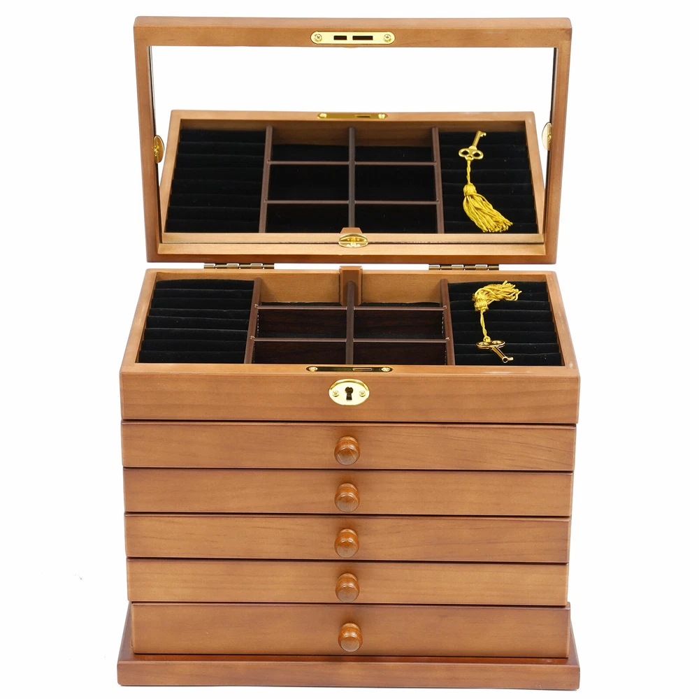What's included? 1* Wooden Jewelry Box 1* Key Weights & Dimensiosns Product Size: 29.5*18.5*25cm/11.61*7.28*9.84inch The First Drawer Size: 28*15.7cm/11.02*6.18inch The Second Drawer: 8 Slots / Each Size: 6.5*7cm/2.55*2.75inch The Third Drawer: 6 Slots / Each Size: 8.5*7cm/3.34*2.75inch The Fourth Drawer: 4 Slots / Each Size: 13*7cm/5.11*2.75inch The Fifth Drawer: 3 Slots / Each Size: 8.5*14.7cm/3.34*5.78inch The Sixth Drawer: 1 Slot / Size: 26.4*14.7cm/10.39*5.78inch Net Weight: 2.5kg/5.51 Lbs Application This Jewelry Box Can Be Used to Store Pendants, Bracelets, Brooches, Necklaces, Rings, Earrings, and Other Larger Jewelry. Specifications Colors: Brown Layer: 6 Layers Types: with Mirror Material: Mdf+Wooden+Velvet Lock: Key Lock 6 Layers Jewelry Box w/ Lock + Mirror Four-Leaf Carved Top Velvet Cabinet Case Description 6 Layers Jewelry Box W/ Lock + Mirror Four-leaf Carved Top Velvet Cabinet Case Description Is Your Jewelry Often Placed in a Cluttered Manner and Can Not Be Found? Do You Have Too Much Jewelry Without a Big Enough Storage Box? the Six-layer Jewelry Storage Cabinet Allows You to Store Many Different Kinds and Sizes of Jewelry. the 4-Leaf Clover Carving on the Surface and the Wooden Material Make This Jewelry Box More Vintage and Elegant. this Jewelry Box Can Be Used to Store Pendants, Bracelets, Brooches, Necklaces, Rings, Earrings, and Other Larger Jewelry. What's Included? 1* Wooden Jewelry Box 1* Key Specifications Colors: Brown Layer: 6 Layers Types: with Mirror Material: Mdf+Wooden+Velvet Lock: Key Lock Weights & Dimensiosns Product Size: 29.5*18.5*25cm/11.61*7.28*9.84inch The First Drawer Size: 28*15.7cm/11.02*6.18inch The Second Drawer: 8 Slots / Each Size: 6.5*7cm/2.55*2.75inch The Third Drawer: 6 Slots / Each Size: 8.5*7cm/3.34*2.75inch The Fourth Drawer: 4 Slots / Each Size: 13*7cm/5.11*2.75inch The Fifth Drawer: 3 Slots / Each Size: 8.5*14.7cm/3.34*5.78inch The Sixth Drawer: 1 Slot / Size: 26.4*14.7cm/10.39*5.78inch Net Weight: 2.5kg/5.51 Lbs Features & Highlights Full Pull-out Drawer: The Drawer of This Jewelry Box Is a Full Pull-out Design, Which Can Display All the Jewelry and Make It More Convenient for You to Get It. High-definition Mirror: The Mirror Inside the Jewelry Box Is Very High-definition and Can Be Used Directly to Wear Jewelry Without Having to Buy Additional Mirrors. Large Capacity: This Jewelry Box Has a Built-in Mirror and 6 Drawers. Each Drawer Is Designed in Different Sizes to Store Many Different Kinds and Sizes of Jewelry. Velvet Fabric: The Lining of This Jewelry Box Is Made of Soft, High-quality Velvet Fabric That Is Comfortable to the Touch. It Can Protect Your Jewelry Well from Being Crushed and Scratched. Safety Latch: The Safety Latch on the Lid Is Designed to Keep All Drawers and the Cabinet Securely Locked. This Will Protect Your Rings, Earrings, Necklaces, Watches, and Other Jewelry Accessories. Compartments: Each Layer Is Divided into Different Sizes of Compartments. You Can Store Different Kinds or Sizes of Jewelry Separately so That You Can Pick and Place Them Clearly. High-quality Material: the Jewelry Box Is Made of Mdf and Wood with Veneer and Painting, Which Is Not Only Very Durable but Also Good-looking. the Interior Is Lined with Soft Velvet Fabric, Which Can Ensure Your Jewelry Will Not Be Scratched and Crushed. Elegant Design: This Item Is Made of Classical Wood with a Four-leaf Clover Carving Pattern on the Surface. All These Unique Designs Make This Jewelry Box Look More Elegant and Chic. Combine at Will: All These Drawers Are Removable. You Can Recombine and Place Each Layer According to Your Needs and Habits. Ideal Gift: This Jewelry Box Has a Unique Design with a Beautiful Appearance and a Large Capacity with Practical Features. It Is an Ideal Gift for Valentine's Day, Mother's Day, Thanksgiving, Christmas, Birthday, and Weddings. Fine Workmanship: f ro m the Smooth Surface to the Soft Lining and Even the Sturdy Latches and Hinges, Giving You a Better Sense of User Experience. Notes We Aim to Provide Quality Products and Services. If You Have Any Problems, Please Feel Free to Contact Us. We Will Reply and Solve the Problem for You As Soon As Possible. Please Allow the Slight Color Difference Caused by the Shooting Light and 1-3cm Error Due to Manual Measurement, and Make Sure You Do Not Mind Before You Order. Payment Delivery details Terms of sales About us Contact us Payment We accept ebay payment 。 Fees such as import duties, taxes are not included in the item price or shipping costs. These charges are the buyer's responsibility. Delivery details Shipping: 2-9 working days to: USA Terms of sales We maintain high standards of excellence and strive for hundred percent customer satisfaction. Feedback is very important to us. We hope that you contact us immediately before you give neutral or negative feedback, so that we can address your concerns. It is impossible to address issues if we do not know about them! About us Your satis faction is our ultimate goal. We work hard to earn your trust and future business. Our certified technicians have tested each item before shipping. The unit comes with 1 year limited warranty on all manufacturing defects. a) If you receive a defective item, you may return it or ask for a discount. Please contact us within 14 days after you receive the package. b) What you returned must be intact and in its original packaging as re? u. Customer is responsible for shipping costs of the returned item. c) We will cover the cost of shipping back t with the shipping rate indicated in the registration page. We will send you a new unit or refund the full payment you paid. Thank you. Contact us Business Hour Business Hour: Monday To Friday: 8:30 AM to 5:00 PM (Beijing China time) Due to time zones, our reply to your questions may not be immediately. But within above working time, we will reply your email within 24 hours. If it's non-workdays, please kindly be patient and wait till Monday. Please 