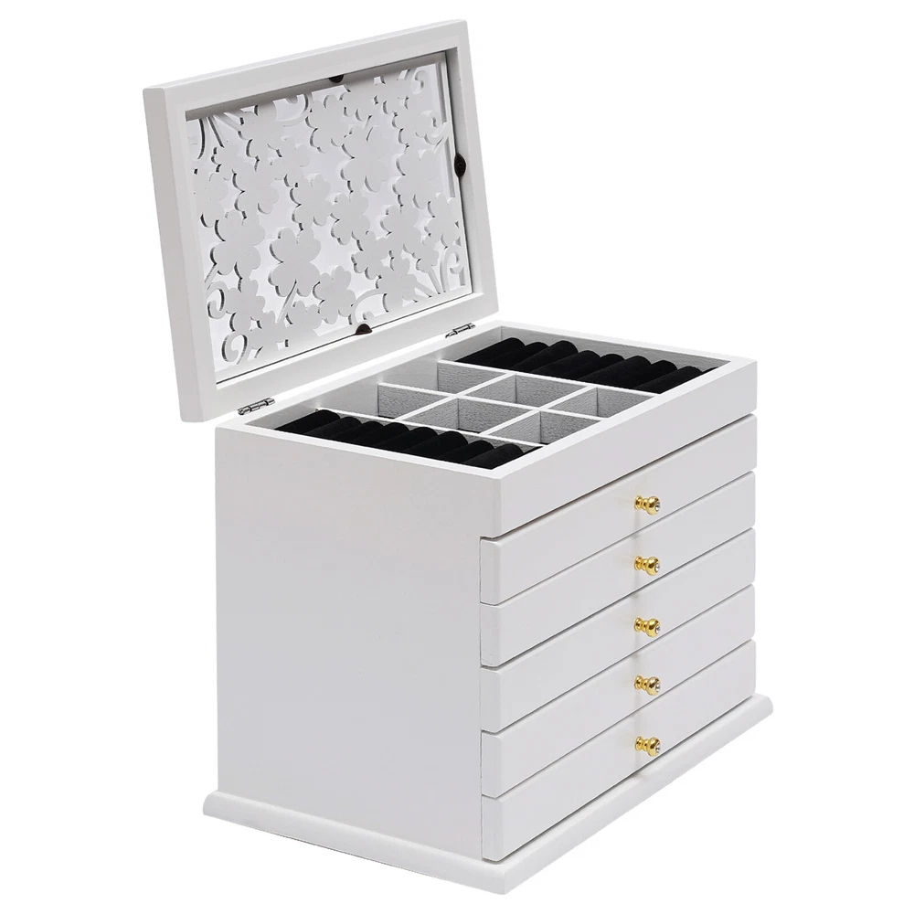 Description: Perfect Organizer: Are You Still Worried About Losing Your Jewelry? This Large Jewelry Box Is a Good Solution, It Can Store Your Valuable Jewelry Collection Well, Such As Earrings, Bangles, Rings And Other Accessories. What's Included: 1 * Jewelry Boxes Features&Highlights: Premium Material: This Jewelry Box For Women Is Made Of Rustic Quality Wood, Which Is Sturdy And Durable. It Keeps Your Jewelry Well Against Dust, Scratches, Damages.Perfect For Eliminating Cluttering And Tangling. High Capacity: This Jewelry Storage Box Has Five Drawers,, Providing Ample Storage Space For Your Jewelry. The Jewelry Organizer Holder Helps To Keep All Your Jewelry Organized Decently, Displayed Neatly And Stored Safely. 6 Layers Wooden Large Jewelry Box/Jewel Case Cabinet Storage Organizer White Description: Perfect Organizer: Are You Still Worried About Losing Your Jewelry? This Large Jewelry Box Is a Good Solution, It Can Store Your Valuable Jewelry Collection Well, Such As Earrings, Bangles, Rings And Other Accessories. What's Included: 1 * Jewelry Boxes Features&Highlights: Premium Material: This Jewelry Box For Women Is Made Of Rustic Quality Wood, Which Is Sturdy And Durable. It Keeps Your Jewelry Well Against Dust, Scratches, Damages.Perfect For Eliminating Cluttering And Tangling. High Capacity: This Jewelry Storage Box Has Five Drawers, Providing Ample Storage Space For Your Jewelry. The Jewelry Organizer Holder Helps To Keep All Your Jewelry Organized Decently, Displayed Neatly And Stored Safely. Vintage Design: The Wooden Jewelry Organizer Box Features The Exquisite And Fashionable Carved Flower, Three-Dimensional, Unique Style, Simple And Elegant. It Perfectly Fits Any Existing Decoration, Adding a Luxury Touch To Any Room. Ideal Gift: This Rustic Wooden Jewelry Organizer Box Is a Perfect Gift For Mom, Wife, Daughter, Or Girlfriend, We Can Be Sure This Will Be The Most Practical And Memorable Gift They Have Ever Received. Weights&Dimensions: Size: 31x20x24.5 cm/12.2*7.9*9.6 inch Weight: 2.75 kg/6.06 lb Specification: Product: Jewelry Boxes Color: White Material: Wood Application: Suitable For Organizing Various Jewelry Including Sunglasses, Watches, Hairpins, Earrings, Rings,Bracelets, Watches And Necklaces Payment Delivery details Terms of sales About us Contact us Payment We accept ebay payment 。 Fees such as import duties, taxes are not included in the item price or shipping costs. These charges are the buyer's responsibility. Delivery details Shipping: 2-9 working days to: USA Terms of sales We maintain high standards of excellence and strive for hundred percent customer satisfaction. Feedback is very important to us. We hope that you contact us immediately before you give neutral or negative feedback, so that we can address your concerns. It is impossible to address issues if we do not know about them! About us Your satis faction is our ultimate goal. We work hard to earn your trust and future business. Our certified technicians have tested each item before shipping. The unit comes with 1 year limited warranty on all manufacturing defects. a) If you receive a defective item, you may return it or ask for a discount. Please contact us within 14 days after you receive the package. b) What you returned must be intact and in its original packaging as re? u. Customer is responsible for shipping costs of the returned item. c) We will cover the cost of shipping back t with the shipping rate indicated in the registration page. We will send you a new unit or refund the full payment you paid. Thank you. Contact us Business Hour Business Hour: Monday To Friday: 8:30 AM to 5:00 PM (Beijing China time) Due to time zones, our reply to your questions may not be immediately. But within above working time, we will reply your email within 24 hours. If it's non-workdays, please kindly be patient and wait till Monday. Please contact us with ebay message. Please feel free to contact us if you have any questions. Monday To Friday: 8:30 AM to 5:00 PM (Beijing China time) Due to time zones, our reply to your questions may not be immediately. But within above working time, we will reply your email within 24 hours. If it's non-workdays, please kindly be patient and wait till Monday. Please contact us with ebay message. Please feel free to contact us if you have any questions.