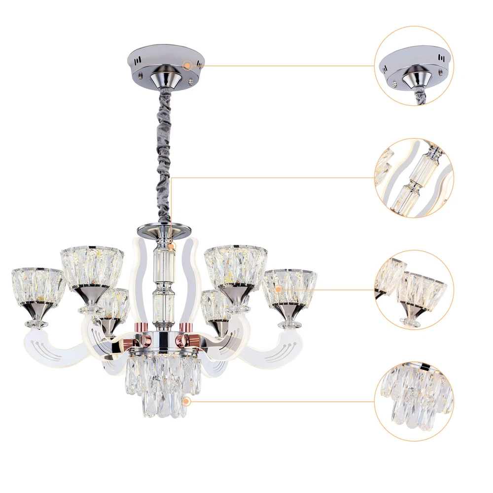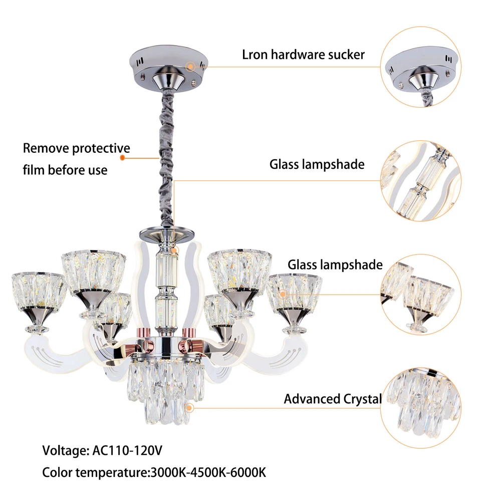 6 Lights Pendant Fixture Modern Ceiling Lamp Elegant Crystal Chandelier USA ❤Welcome❤ Description Elegance is not only a temperament but also a life attitude. Let this 6 light-shaded contemporary chandelier brighten and warm your room. It is made of hardware, acrylic, and crystal lampshades, making it beautiful and durable. Different light colors can freely switch according to your mood and it will be gorgeous no matter in the day or at night. Key Features Good Material: This chandelier is made of hardware, acrylic and crystal lampshades, making it stable, and not easy to deform, so it can keep beautiful and practical for a long time. Elegant Decoration: It can significantly improve the decorative effect of the room, making the whole space more gorgeous and exquisite, while the multi-faceted crystal cutting can make the light be reflected more softly and evenly illuminating the whole room, giving people a comfortable feeling. Three Colors Dimmable: You can adjust to white light when you only use it for lighting or meeting guests. Turn on the natural light to protect your eyes when watching TV. And warm light is the perfect choice to create a romantic atmosphere! Energy Saving: It is equipped with an LED strip and light source, which is bright, energy-saving, and environmentally friendly. Ideal Gift: With a fashionable appearance and complete functions, this item can be regarded as a gift for parents, friends, and lovers, and as a gift for housewarming, birthdays, and holidays. Effortless Cleaning: The surface of the crystal chandelier is made of high-grade crystal, which is not easy to attach dust. And the sealed lampshade design makes mosquitoes and dust can not enter. So it is easy to maintain, when dust accumulates, you only need to use a towel to clean it. Good Transmittance: Acrylic lampshade has better light transmission compared with the regular lampshades, it has better light transmittance, allowing you to fully feel the light within 215.28ft ². Easy to Install: It does not require complicated assembly steps. And this product comes with complete accessories, you don't need to buy extra tools to install it. And it can also be installed on the ceiling with a certain slope. Customer Service: We aim to provide quality products and services. If you have any problems, please feel free to contact us. We will reply and solve the problem for you as soon as possible. Details Crystal Lampshade: This product is equipped with clear crystal lampshades, which can let the light be better divergence, soft, and not dazzling. Round Base: The 7.08in diameter hardware base enhances load-bearing capacity and stability, ensuring a solid foundation. Lamp Chain Fleece: The light chain is covered with fleece, which is more beautiful than the straight chain and can better cater to the design of the goods themselves Application Its applicable area is 10-20 ㎡/107.64-215.28ft ². And it is very suitable for bedrooms, restaurants, living rooms, kitchen islands, hotels, cafes, bars, clubs, corridors, pavilions, and any space you like. It can be used for cement ceilings. Specification Process: Plating Color: Silver Style: Modern Shape: Round Voltage: 85-265V Power: 72W Efficiency: E Material: Hardware, Acrylic and Crystal Light Source: LED Light Strip(Included) Assembly Required: Yes Color Temperature: 3000K-4000K-6000K Light Color: White Light, Neutral Light, Warm Light Applicable Space:10-20 ㎡/107.64-215.28ft ² Applicable Floor Height: 2.7m/8.86ft Base Diameter:18cm/7.08in Chain Length: 45cm/17.71in Diameter of Single Lampshade: 12cm/4.72in Package Included 1* Crystal Chandelier 1*English Manual Other Accessories for Assembly Notes Please read the English manual completely before installing. And pay particular attention to the safety instructions included. Please allow the slight color difference caused by the shooting light and 1-3 cm error due to manual measurement, and make sure you do not mind before ordering. Welcome to autocomponents999 Our store has a wide range of product categories for you to choose from. Welcome to click on our store to make a purchase or consult us, and we will recommend the products you need. Welcome to autocomponents999 to purchase products, please feel free to contact us for any questions.👍 Payment Delivery details Terms of sales About us Contact us Payment We accept ebay payment 。 Fees such as import duties, taxes are not included in the item price or shipping costs. These charges are the buyer's responsibility. Delivery details Shipping: 2-9 working days to: USA Terms of sales We maintain high standards of excellence and strive for hundred percent customer satisfaction. Feedback is very important to us. We hope that you contact us immediately before you give neutral or negative feedback, so that we can address your concerns. It is impossible to address issues if we do not know about them! About us Your satis faction is our ultimate goal. We work hard to earn your trust and future business. Our certified technicians have tested each item before shipping. The unit comes with 1 year limited warranty on all manufacturing defects. a) If you receive a defective item, you may return it or ask for a discount. Please contact us within 14 days after you receive the package. b) What you returned must be intact and in its original packaging as re? u. Customer is responsible for shipping costs of the returned item. c) We will cover the cost of shipping back t with the shipping rate indicated in the registration page. We will send you a new unit or refund the full payment you paid. Thank you. Contact us Business Hour Business Hour: Monday To Friday: 8:30 AM to 5:00 PM (Beijing China time) Due to time zones, our reply to your questions may not be immediately. But within above working time, we will reply your email within 24 hours. If it's non-workdays, please kindly be patient and wait till Monday. Please contact us with ebay message. Please feel free to contact us if you have 