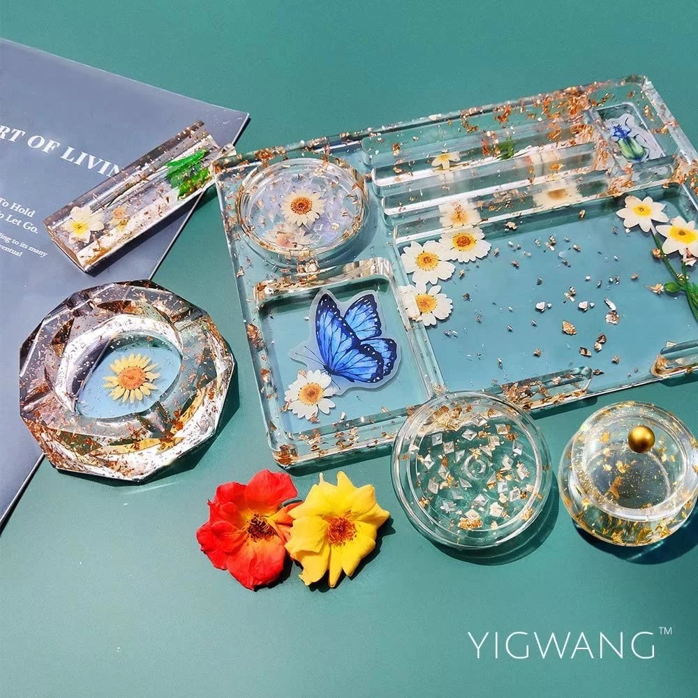 Resin Molds 【100% Silicone Resin Molds】The epoxy resin kit includes 1 pair of grinder mold for resin, 1 large rolling tray mold, 1 mini jar mold,1 holder mold and 1 container. Our resin casting kit is not only a decoration also can help you grind and store. 【Safe and Durable】The large resin rolling tray mold is made of reusable quality silicone which are flexible and thick enough to make your resin art. With other 3 necessary tools,’s epoxy kit meet you all needs during making process. 【How Much Resin Material】Resin tray mold about: 11.7oz (331g), grinder mold about: 2.9oz (82g), 1 holder mold about: 1.4oz(42g) , 1 container about: 4.4oz(124g). 【Using Tips For You】WARNING: Torch is not recommended to use as the flame will tear the silicone molds. 1) In order to make the product structure stronger, please use high-quality resin materials and use toothpicks to bring the bubbles from the teeth. 2)It is easy to pop out and demold after fully concretd and reduces the need to polish again. 【Premium Gift】The resin casting kit will help you to design your handmade ornaments and give it to friends or family as a gift birthday,Thanksgiving, Christmas, Valentine’s day, New Year gift and so on.BTW,please contact us if you meet some problems during the making process.And you may contact us before purchase, we will reply within 24 hours.