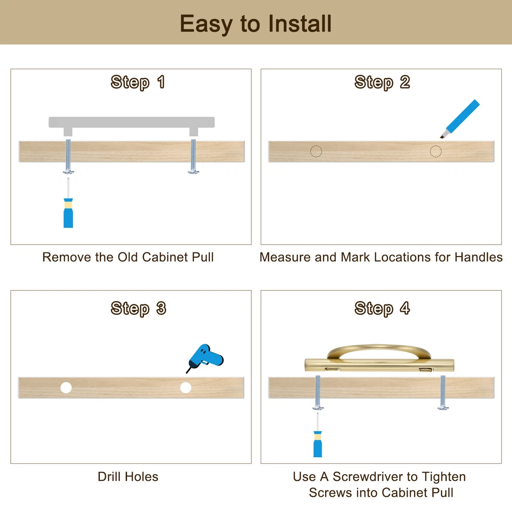 Document Advantage:The cabinet drawers handles are made of aluminum alloy and have good rust and corrosion resistance.The surface adopts an electroplating process and is not easy to fade, improve your home with their simple elegance.Edge design, no-sharp and rounded edges, soft touch. Half-moon design for easy operation and comfortable grip.Each handle has matching long screws and short screws. Make sure to fit cabinets of different thicknesses.This cabinet handle is suitable for cabinet, closet, cupboard, drawer, dresser, door, wardrobe. Specification:Material: Aluminum alloyColor: GoldSize: 11.5 cm x 1.1 cm x 4.5 cm/4.5"L x 0.45"W x 1.78"HPackage Included: 6 pcs x Kitchen Cabinet HandlesNote: Manual measurement, please allow slight errors in size. The color may have a slight difference due to different screen displays. 6 Pack Brushed Gold Pulls Cabinet Door Handles 3.75 inch (96MM) Hole Centers Advantage : The cabinet drawers handles are made of aluminum alloy and have good rust and corrosion resistance. The surface adopts an electroplating process and is not easy to fade, improve your home with their simple elegance. Edge design, no-sharp and rounded edges, soft touch. Half-moon design for easy operation and comfortable grip. Each handle has matching long screws and short screws. Make sure to fit cabinets of different thicknesses. This cabinet handle is suitable for cabinet, closet, cupboard, drawer, dresser, door, wardrobe. Specification : Material: Aluminum alloy Color: Gold Size: 11.5 cm x 1.1 cm x 4.5 cm/4.5"L x 0.45"W x 1.78"H Package Included: 6 pcs x Kitchen Cabinet Handles Note: Manual measurement, please allow slight errors in size. The color may have a slight difference due to different screen displays. Hot Item Payment 1.We accept eBay payment . 2.Payment must be received within 7 business days of auction closing. Shipping 1.We ship to your eBay or Paypal address. Please make sure your eBay and Paypal address is correct before you pay. 2.Items will be shipped within 1-3 business day when we received payment. 3.Delivery time depends on destination and other factors. Description Policy 6 Pack Brushed Gold Pulls Cabinet Door Handles 3.75 inch (96MM) Hole Centers Advantage : The cabinet drawers handles are made of aluminum alloy and have good rust and corrosion resistance. The surface adopts an electroplating process and is not easy to fade, improve your home with their simple elegance. Edge design, no-sharp and rounded edges, soft touch. Half-moon design for easy operation and comfortable grip. Each handle has matching long screws and short screws. Make sure to fit cabinets of different thicknesses. This cabinet handle is suitable for cabinet, closet, cupboard, drawer, dresser, door, wardrobe. Specification : Material: Aluminum alloy Color: Gold Size: 11.5 cm x 1.1 cm x 4.5 cm/4.5"L x 0.45"W x 1.78"H Package Included: 6 pcs x Kitchen Cabinet Handles Note: Manual measurement, please allow slight errors in size. The color may have a slight difference due to different screen displays. Hot Item Payment 1.We accept eBay payment . 2.Payment must be received within 7 business days of auction closing. Shipping 1.We ship to your eBay or Paypal address. Please make sure your eBay and Paypal address is correct before you pay. 2.Items will be shipped within 1-3 business day when we received payment. 3.Delivery time depends on destination and other factors.