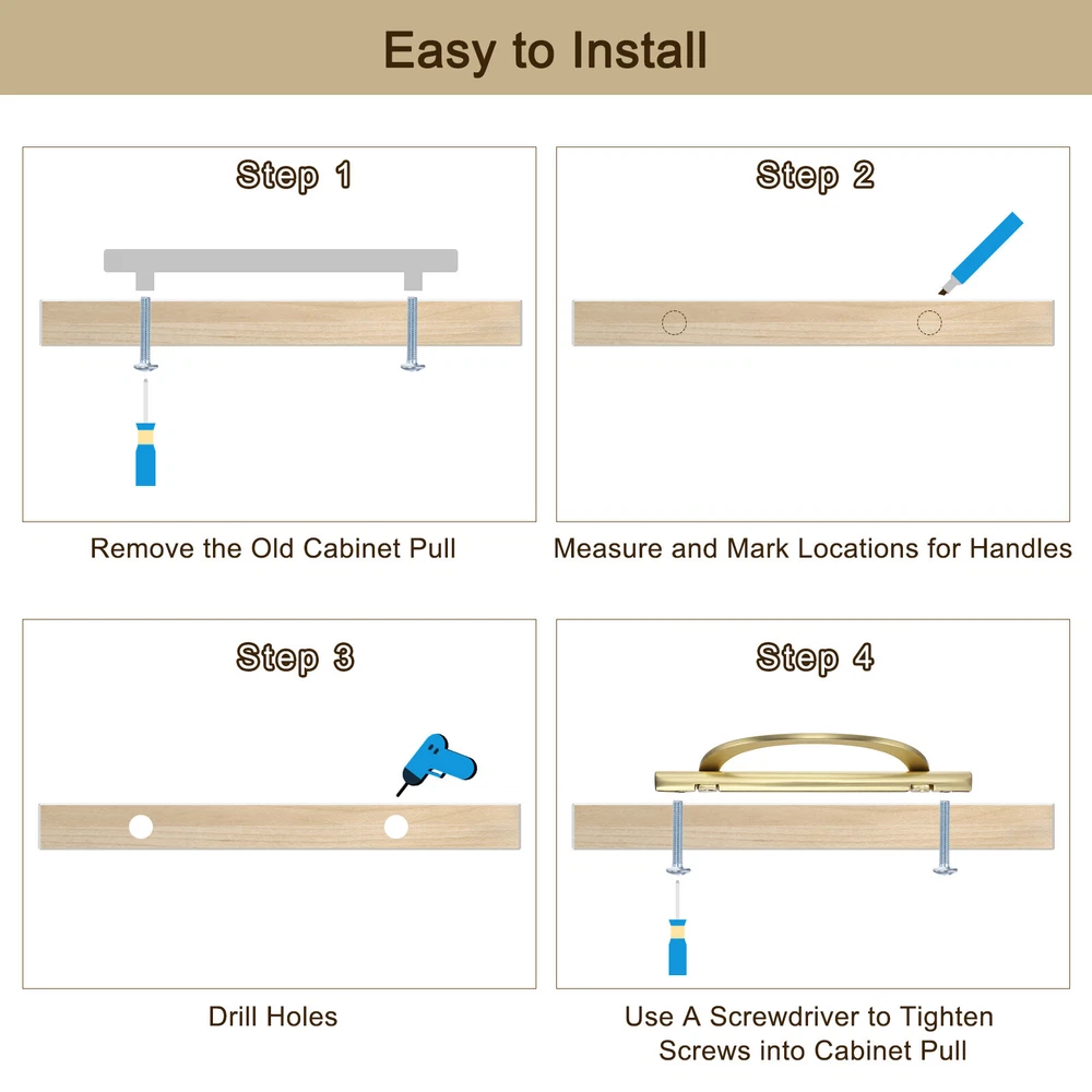Document Advantage:The cabinet drawers handles are made of aluminum alloy and have good rust and corrosion resistance.The surface adopts an electroplating process and is not easy to fade, improve your home with their simple elegance.Edge design, no-sharp and rounded edges, soft touch. Half-moon design for easy operation and comfortable grip.Each handle has matching long screws and short screws. Make sure to fit cabinets of different thicknesses.This cabinet handle is suitable for cabinet, closet, cupboard, drawer, dresser, door, wardrobe. Specification:Material: Aluminum alloyColor: GoldSize: 15.5 cm x 1.1 cm x 5 cm/6.1"L x 0.45"W x 2"HPackage Included: 6 pcs x Kitchen Cabinet HandlesNote: Manual measurement, please allow slight errors in size. The color may have a slight difference due to different screen displays. 6 Pack Brushed Gold Pulls Cabinet Door Handles 5 inch (128MM) Hole Centers Advantage : The cabinet drawers handles are made of aluminum alloy and have good rust and corrosion resistance. The surface adopts an electroplating process and is not easy to fade, improve your home with their simple elegance. Edge design, no-sharp and rounded edges, soft touch. Half-moon design for easy operation and comfortable grip. Each handle has matching long screws and short screws. Make sure to fit cabinets of different thicknesses. This cabinet handle is suitable for cabinet, closet, cupboard, drawer, dresser, door, wardrobe. Specification : Material: Aluminum alloy Color: Gold Size: 15.5 cm x 1.1 cm x 5 cm/6.1"L x 0.45"W x 2"H Package Included: 6 pcs x Kitchen Cabinet Handles Note: Manual measurement, please allow slight errors in size. The color may have a slight difference due to different screen displays. Hot Item Payment 1.We accept eBay payment . 2.Payment must be received within 7 business days of auction closing. Shipping 1.We ship to your eBay or Paypal address. Please make sure your eBay and Paypal address is correct before you pay. 2.Items will be shipped within 1-3 business day when we received payment. 3.Delivery time depends on destination and other factors. Description Policy 6 Pack Brushed Gold Pulls Cabinet Door Handles 5 inch (128MM) Hole Centers Advantage : The cabinet drawers handles are made of aluminum alloy and have good rust and corrosion resistance. The surface adopts an electroplating process and is not easy to fade, improve your home with their simple elegance. Edge design, no-sharp and rounded edges, soft touch. Half-moon design for easy operation and comfortable grip. Each handle has matching long screws and short screws. Make sure to fit cabinets of different thicknesses. This cabinet handle is suitable for cabinet, closet, cupboard, drawer, dresser, door, wardrobe. Specification : Material: Aluminum alloy Color: Gold Size: 15.5 cm x 1.1 cm x 5 cm/6.1"L x 0.45"W x 2"H Package Included: 6 pcs x Kitchen Cabinet Handles Note: Manual measurement, please allow slight errors in size. The color may have a slight difference due to different screen displays. Hot Item Payment 1.We accept eBay payment . 2.Payment must be received within 7 business days of auction closing. Shipping 1.We ship to your eBay or Paypal address. Please make sure your eBay and Paypal address is correct before you pay. 2.Items will be shipped within 1-3 business day when we received payment. 3.Delivery time depends on destination and other factors.