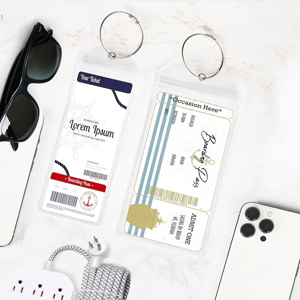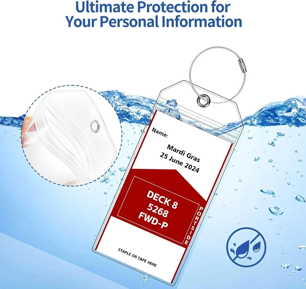 6 Pack Luggage Tags for Cruise Ship Essentials for NCL, Princess, Carnival, Royal Caribbean and Celebrity Cruise Necessities by Cruise Essentials: Top seal ensures waterproof & clear luggage tag in any weather condition; Made of heavy-duty plastic and stainless steel hardware, never worry about losing or falling off Fit Your Future Cruise: 's latest cruise luggage tag holders are the ideal accessory for your upcoming voyages with major cruise lines like Norwegian, Princess, Carnival, Royal Caribbean & Celebrity, among others Versatile Options: Available in two practical sizes ( x / x inches) to suit your needs, with multiple units in stock for family travel convenience Easy to Use: It's a hassle-free way to prepare for your cruise; Simply print your paper tag, fold it, and slide it into the clear plastic holder; Then securely attach it to your luggage handle - no tools needed Gift Idea: Searching for the ideal gift for the cruise enthusiast in your life? The cruise luggage tag holder makes a thoughtful and practical present
