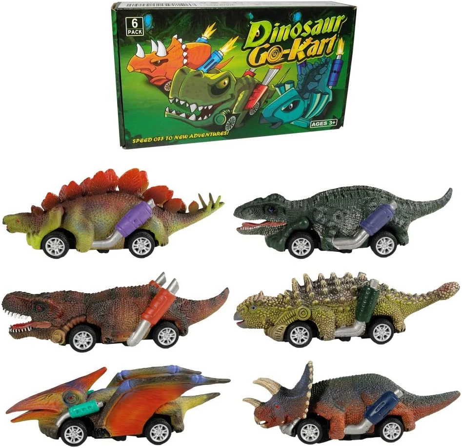Business is our speciality NEW 6 Pack Dino Toys for 3 Year Old Boys Girls and Toddlers,Boy Toys Age 3,4,5 FEATURES [6-PACK DINOSAUR CARS] A collection of 6 artfully-crafted roadster dinosaur pull back toy cars make perfect dino toys for 3 year old boys. Our dinosaur toys include T-Rex, Triceratops, Stegosaurus, Ankylosaur, Pterosaur, and Velociraptor. [PERFECT MINI SIZE] Small Size Dinosaur Pull Back Toy Cars are approximately 5" in length. This size makes the dinos toys for toddlers and boys easy to hold and play with the dinosaur cars. Recommended toys for boys ages 3, 4, and 5. [PULL BACK TOY CARS] The simple pull back and go dinosaur cars are easy to play, go fast and sturdy. These dino toys for 3-year-olds and up, teach children about different dinosaurs. Just pull it back and watch the dino cars race in the room. [GREAT TOYS FOR BOYS & TODDLERS] Dinosaur cars make a great party favor or a winning prize at a dinosaur themed birthday party. The dino pull back toy cars make for fun dino games. Our dino cars can help a child learn about dinosaurs. [DINOSAUR TOYS] The 6 distinct dinosaur cars designed as a roadster pull back car toy make great toys for boys or girls. The dino toys make a great birthday gift or a special toy to give to any child who loves dinosaurs. Product Description Mini Size Toys for 3-6 Year Old Kids Mini size dinosaur toy cars, fit perfectly in children's hand, easy for kids to grip and paly. Length: Approximately 5 inch Width:Approximately 1.5 inch Height: Approximately 2 inch Dinosaur Toys Pull Back Cars Package includes 6 different designs dinosaur toys: T-Rex Triceratops Stegosaurus Ankylosaur Pterosaur Velociraptor Why Choose us? Realistic hand painted in highly details. Safe Dinosaur Toys for Kids: Dinosaur monster trucks designed with high quality and durable non-toxic plastic. All our toys are certified to meet US toy safety standards and ensure it safe for kids. Pull back vehicles, pull back and let go, suitable for playing indoors and outdoors. No batteries required, with smooth surface and flexible rubber wheels, convenient and interesting for kids. Fun Dinosaur Toys for Boys The dinosaur figures are carefully crafted and hand painted with vibrant detail, The design of realistic dinosaurs and vehicle combination makes a cool dinosaur toy for boys. Promoting Parent-Child Interaction On the one hand, this dinosaur toys pull back vehicle can promote the feelings between children and parents. On the other hand, it can help your kids to learn about dinosaurs, encouraging imagination and creative thinking. Best Dinosaur Toys for Kids The dinosaur monster trucks are packed by gift box. Excellent party favor or a winning prize at a dinosaur themed party. Great birthday gift or a special toy gift to any kids who love dinosaur. Item model number D19B Product Dimensions 9.1 x 5.6 x 1.9 inches Item Weight 10.2 ounces Manufacturer recommended age 3 years and up Department boys 5.6 inches x 9.1 inches x 1.9 inches. Weight: 10.2 oz Ask us anyhting Free shipping PAYMENT We accept all payments via Ebay using Credit Cards , PAYPAL , Apple Pay and many others SHIPPING We are always working hard to ensure your package arrives as soon as possible. Please understand that some factors like weather, high postal traffic, and the performance of shipping companies are outside of our control. DELIVERY & RETURN POLICY We offer a 30-Day Return Policy on items in which you are not completely satisfied with. You have the option of a full-refund or an exchange of the item. No returns are available on items shipped outside of the USA.