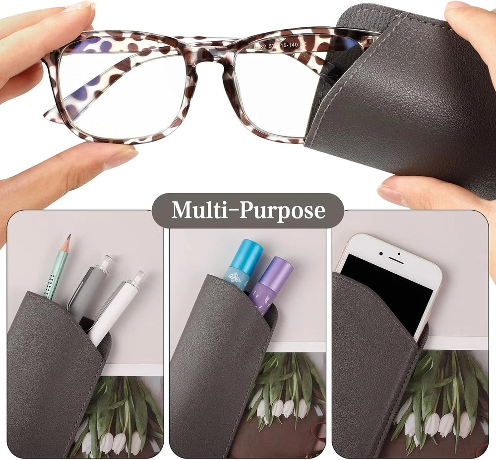 6 Pack Soft Glasses Cases, Leather Eyeglass Cases Glasses Pouch Travel Glasses C