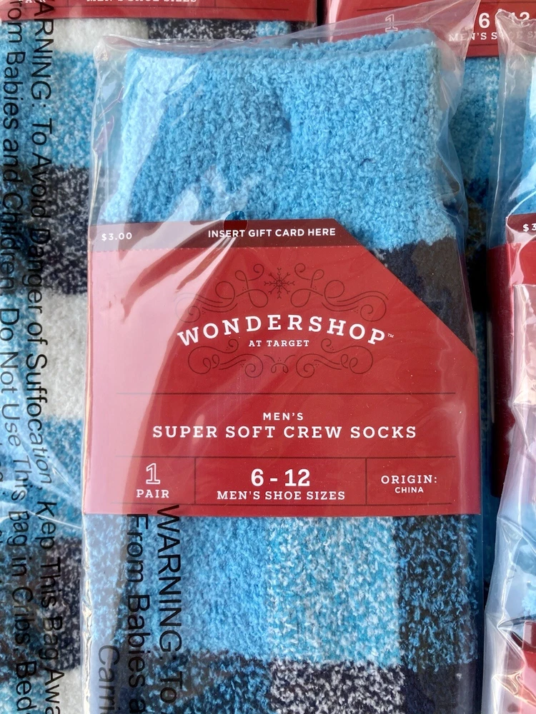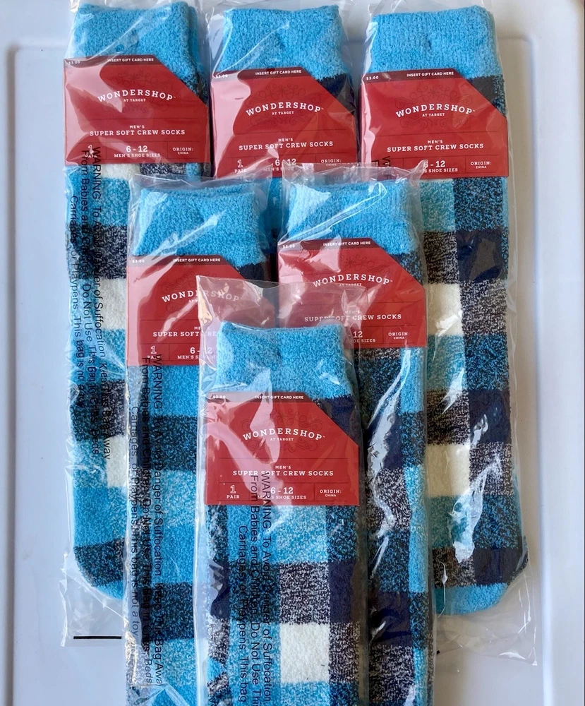 6 Pack - WonderShop Mens Blue Black White Plaid Super Soft Crew Socks Size 6-12.