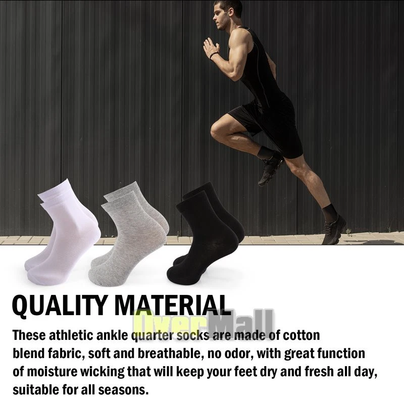 6 Pairs Mens Plain Solid Cotton Sports Ankle/Quarter Crew Athletic Socks Casual 6 Pairs Mens Plain Solid Cotton Sports Ankle/Quarter Crew Athletic Socks Casual BEST CUSTOMER SERVICE ON OUR sale2015express EBAY STORE↓ ↓ ↓ SHIP From US Local Stock FAST & Free, 1-6 Days Arrival FREE Return, Seller Pay!! LIFETIME Money Back Guarantee LIFETIME Free Replacement Guarantee LIFETIME Warranty QUICKLY Reply within 24 Working Hours MOST orders ship within 1 business day with Tracking Number ANY PROBLEM please email us before feedback, thanks! Add our listing to Watchlist Or Add to Cart , you will get more discount!!! Feature: -- Breathable mesh: The mesh breathable design of the socks provides better moisture absorption and breathability, avoiding sweat accumulation during exercise and keeping your feet dry. -- Comfortable to Wear: Made of high-quality cotton, specially designed to fit the contours of your feet, providing you with a comfortable and soft wearing experience. -- Reinforced Ankle Socks: Features front and back reinforcement for outdoor sports, and elastic cuffs for a stable fit. -- Suitable for Sports: These socks are suitable for professional sports and daily casual wear, such as walking, running, hiking, playing basketball, exercising, etc. Specification: Colour: Black,White,Gray Material: 80% cotton + 20% spandex Size: one size Product size: 28.5*7*9.5cm/11.2*2.76*3.74inch Package includes: 1/3/6pair* socks On Dec 1, 2024 at 08:15:35 PST, seller added the following information: