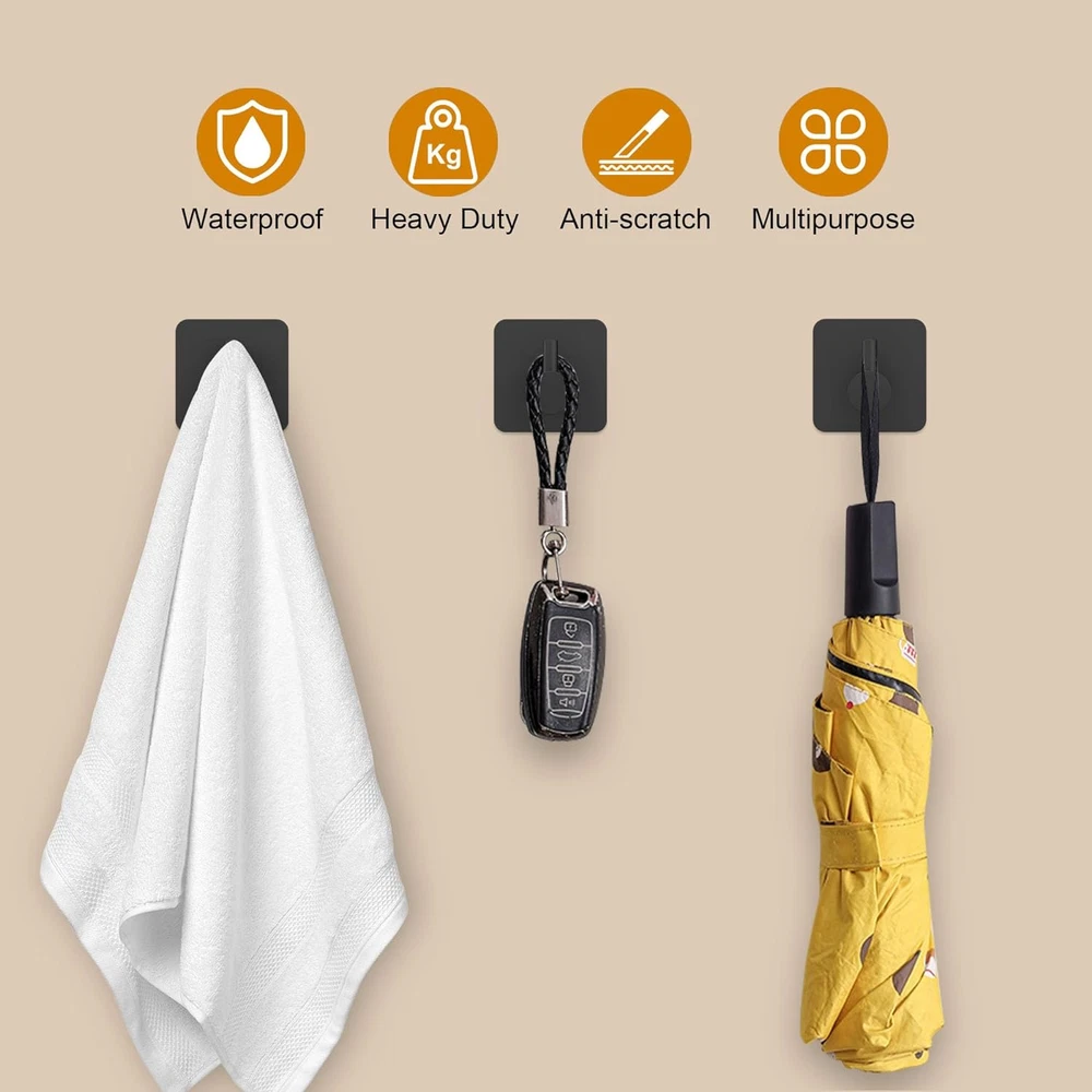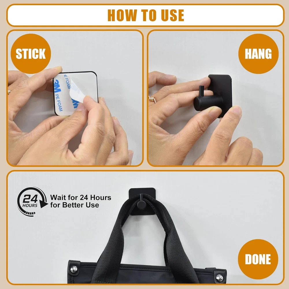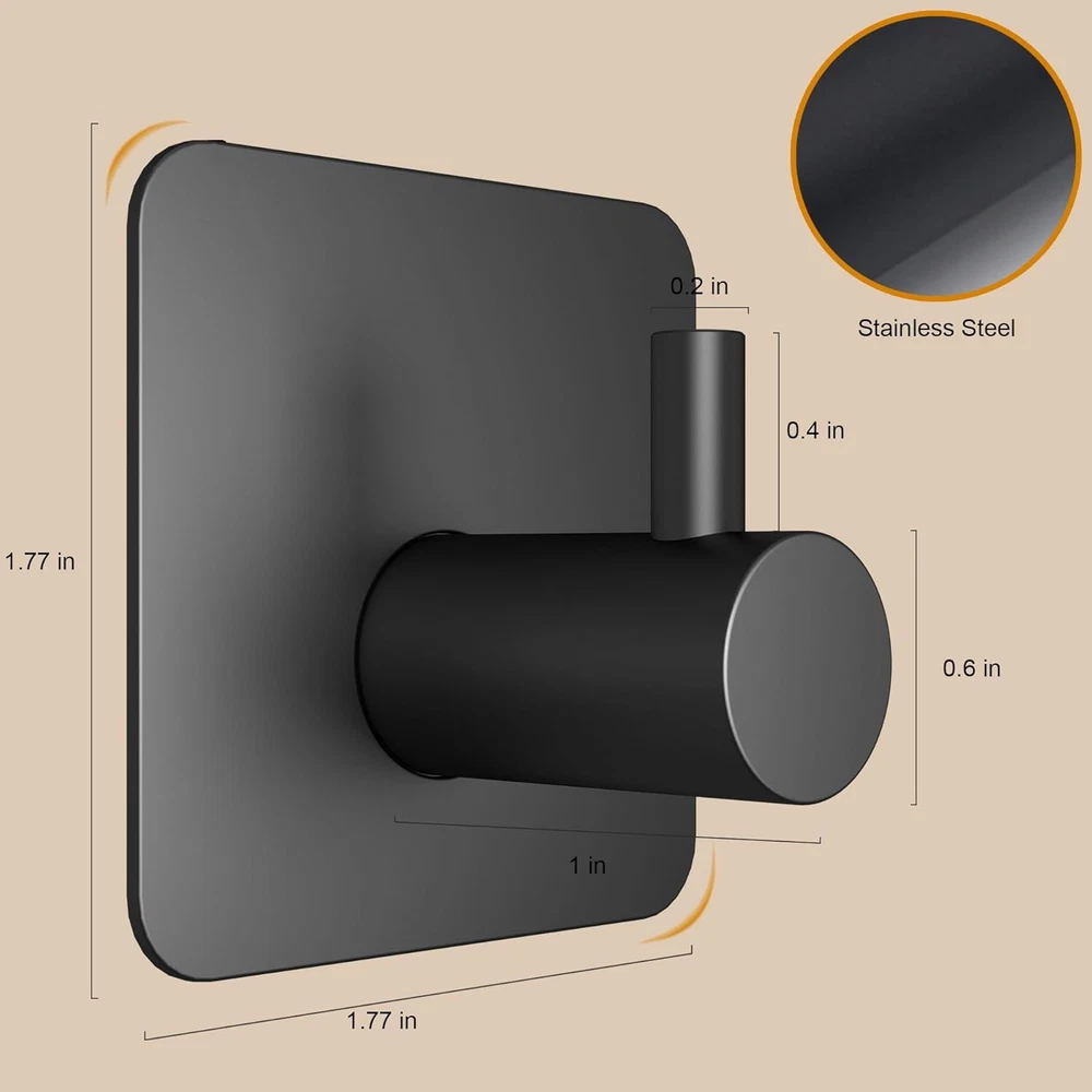 【Adhesive Hooks】This Adhesive hook is designed for easy hanging of items on various surfaces. It uses high-quality adhesive that sticks firmly to walls, doors, glass, and more. 【Heavy-Duty Support】Professionally tested, these hooks are designed to handle heavier items. Made of high-quality stainless steel. No worries about them falling or becoming loose. 【Waterproof and Long-lasting】These hooks feature a waterproof design, making them suitable for use in moist environments like bathrooms and kitchens. They stand up to steam and water droplets, maintaining strong adhesive performance for a long time without damage. 【Easy to Install】Simply peel off the protective layer of the adhesive hook on the back and stick it in the desired position. Recommended to leave it on 24 hours before hanging any objects. 【Wide Applications】You can stick them on smooth hard surface including marble, glass, ceramic tile, plant, metal, wood and PVC. They can be used to hang keys, towels, folders, photos, and more, providing a convenient solution for item storage. Product Description