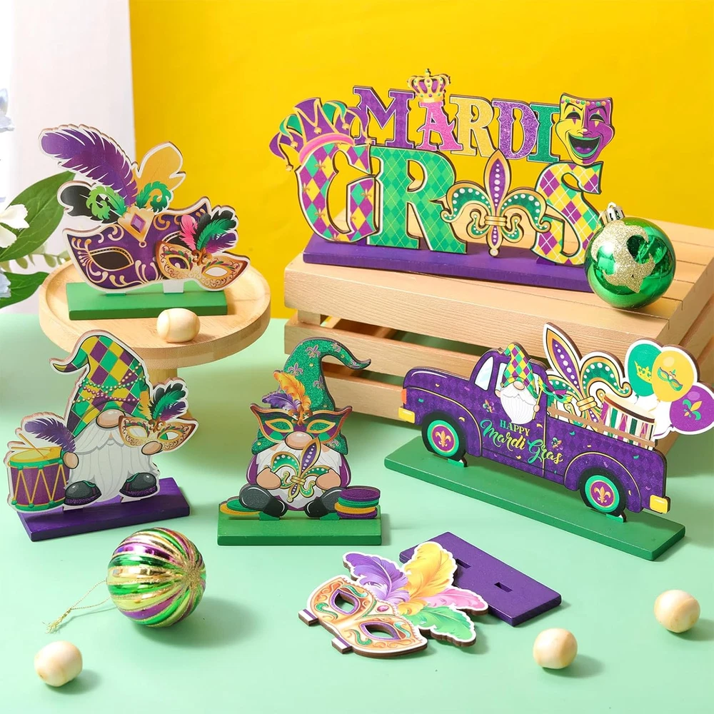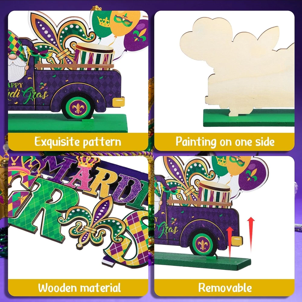 Store New Arrivals Add to Favorite View Feedback Contact Fast deliveries to the customer's home Quality customer service John Make the customers happy! 6 Pcs Mardi Gras Table Decorations Mardi Gras Wooden Table Centerpieces Masquerade Party Fleur De Lis Mask Gnome Truck Signs for Dinner Table Carnival New Orleans Style Party Decor Description Mardi Gras Wooden Decor: you will receive a set of 6 Mardi Gras table decorations, each is designed and marked with Mardi Gras themed words and patterns, the beautiful and vibrant color matching makes the Mardi Gras centerpieces truly reflect the festive atmosphere of Mardi Gras, these decorations are ready to liven up your party instantly Thoughtful Gifts for Festive Celebrations: these masquerade party decorations serve as a delightful present choice, the holiday related engravings can easily convey your heartfelt wishes and blessings, whether for friends or family members, they will certainly appreciate this charming Mardi Gras table decor and feel your love and care Quality Material: these Mardi Gras centerpieces are made of wood, ensuring their safety and longevity, each table sign set on a sturdy wooden base that offers stability when placed on the tabletop; Please note the slot of the wooden base may be a little tight, and you can push the wooden topper into slot Suitable Size: this Mardi Gras gnome sign comes in 2 pieces, measuring about 4.72 x 4.65 inches and 3.86 x 4.72 inches; And the Mardi Gras eye mask decor comes in 2 pieces, measuring about 5.12 x 4.41 inches and 3.94 x 4.72 inches; Wooden Mardi Gras table sign is about 8.78 x 4.84 inches; The happy Mardi Gras truck sign is about 9.06 x 5.12 inches, and please check the size before purchasing Wide Application: these Mardi Gras centerpieces for table are suitable for a variety of occasions such as Mardi Gras, masquerade mask parties, engagement ceremonies and cosplay parties, they also serve as ideal background props for photos and videos; And you can place these Mardi Gras table centerpieces on desktop, shelf, or add them to the desk decor at your office, wherever they are, the Mardi Gras holiday atmosphere follows Product Description Item model number DI--2347 Style Modern Mounting Type Tabletop Batteries required No Product Dimensions 5.12"L x 9.06"W Country of Origin China Item Weight 0.29 Kilograms Included Components 6 x Mardi Gras wooden table centerpieces ABOUT US We offer the best prices around on high quality products. Our E-store includes media such as books, movies, music and games while offering electronics, toys, sporting apparel, clothing, tools, general home, garden items and more. SHIPPING We are always working hard to ensure your package arrives as soon as possible. Please understand that some factors like weather, high postal traffic, and the performance of shipping companies are outside of our control. We offer free shipping to the lower 48 states and ship within 2 business days of payment, usually sooner. We do not accept P.O. Boxes. Please provide a physical address. For shipping outside of the continental USA, we only use eBay's Global Shipping Program. The item is shipped to KY and then sent to the rest of the world. International customers are responsible for all duties and taxes. Continue to 'check out' to calculate costs for shipping the item to your country. Messages regarding eBay's Global Shipping Program MUST be directed at eBay EXCLUSIVELY. RETURNS We offer a 30-Day Return Policy on items in which you are not completely satisfied with. You have the option of a full-refund or an exchange of the item. No returns are available on items shipped outside of the USA PAYMENT We accept PayPal. CONTACT US This page content is yet to come Please ad us to your favorite seller and visit again later Thank You CUSTOMER SATISFACTION We try our very best to make sure every customer is completely satisfied. If there's a problem, message us! We're happy to help. WE ACCEPT