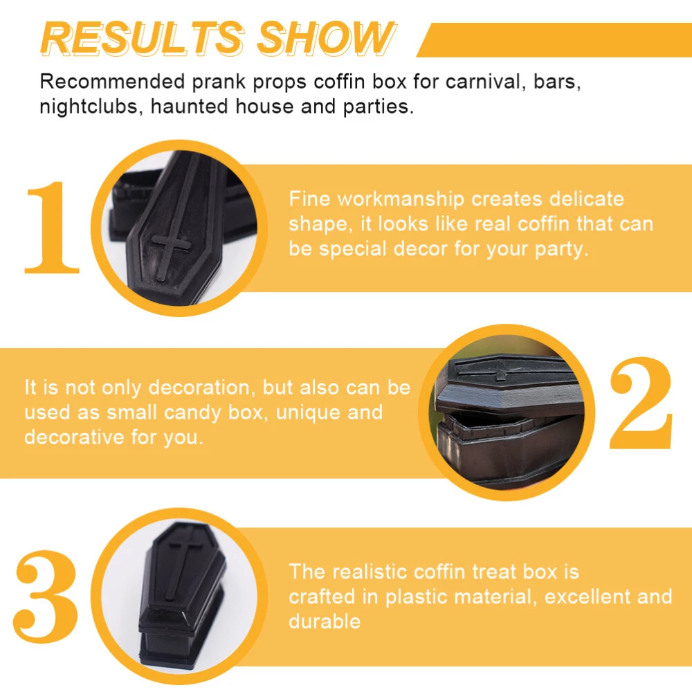 Related Hot Sale 1PC Wire Egg Holder Tray Display Iron Egg Tray Rack Rack Storage for Eggs US $10.88 Popcorn Machine Kettle Stirrer Commercial Shaft Wire Sleeve Accessories US $18.19 50PCS Wind Chime Making Tubes Wind Chime Tubes Parts Supplies for DIY Crafts US $10.60 Lobster Crackers Stainless Steel Shrimp Wire Knife Peeler Set US $11.85 2 Pcs 45 Degree Angled Closet Rod Bracket Bevel Flange Base Baby US $15.75 Decade Resistor Box Resistance Substitution Varistor Travel US $13.49 | Baby | | Books & Magazines | | Business & Industrial | | Cameras & Photo | | Clothing, Shoes & Accessories | | Collectibles | | Computers/Tablets & Networking | | Crafts | | Home & Garden | | Jewelry & Watches | | Cell Phones & Accessories | | Consumer Electronics | | Sporting Goods | | Toys & Hobbies | | Video Games & Consoles | | Health & Beauty | Product Description Collecting listings has surprises Description The classic and chic black coffin box with lid is good choice to add the festival atmosphere, adding more fun and bringing more fun to the party. Made of high-grade material, , no fading, no deformation, light and portable, decorative and reusable. Features - Color: Black. - Material: Plastic. - Size: 5.50X3.70X2.30cm/2.16X1.45X0.90inch. - It is not only decoration, but also can be used as small candy box, unique and decorative for you. - Recommended prank props coffin box for carnival, bars, nightclubs, haunted house and parties. - Decorative coffin treat candy box makes really eerie atmosphere and bring you unforgettable festival atmosphere. - Fine workmanship creates delicate shape, it looks like real coffin that can be special decor for your party. - The realistic coffin treat box is crafted in plastic material, excellent and , safe and reliable for long time use. Coffin Prank Props for Party Supplies Package includes 6 x Black Coffin Boxes with Lids Contact US 1.If you have some inquires or problems, Please feel free to contact us. 2.We will reply your email within 1 business day (except weekend). 3.When delivery is delayed or items are damaged during delivery, please email us first before you leave feedback. Thank you. People Who Viewed This Item Also Viewed 2 Pairs of Foot Inserts Gel Material Insoles Self-adhesive Shoe Pads Summer US $10.38 Radiator Hose Connector Sturdy 1-1/2" to 1-1/2" Inch Hose Barb Splice Coupler US $15.64 2PCS Watch Repair Tools Watch Parts Dust Cover Storage Tray for Watchmaker US $16.11 1PC Cuckoo Clock Owl Vintage Wall Clock Battery Operated Pendulum Chiming Watch US $19.68 4 Pcs Cross Wreath Ring Shape Foam Wire Floral Frame Garland US $30.71 1PC Lamp Shade Clip On Bulb Lamp Shades Replacement Lamp Shades Table Lamp Cover US $16.45 Acrylic Rose Holder Gold Dipped Rose Stand Rose Flower Stem Holder US $12.08 Stethoscope Ear Tips 10 Pairs Soft-Sealing Earplug Universal Replacement Parts US $11.39 1 Bunch Wedding Bridal Bouquet Simulation Sunflower Bouquet Wedding Decoration US $15.28 5PCS Pet Collar Pendant Pet Bells Cat Bells Dog Bells Loud Pet Collar Bell US $11.99 Pagodas Statue Garden Pagodas Figurine Garden Decoration Zen Garden Home Decor US $21.68 Water Ring Toss Toys Game Travel Toys for Party Favors Handheld Game Water Games US $11.44 Holder Suction Cup Pole Bracket Metal Flagpole Bracket Flag Pole Holder US $20.39 1PC Rabbit Food Bowl Water Bowl Stainless Steel Bowl Bunny Feeder Pet Supplies US $14.45 2PCS Bike Brake Pads Mountain Bike Brake Pad Indoor Cycling Bike Brake Block Gym US $11.89 4PCS Heavy Duty Outdoor Rain Gauge Plastic Rain Gauge Accurate Rainfall Gauges US $12.65 10PCS Massage Shower Scrubbers Massage Shower Sponges Hanging Bath Sponge US $15.02 Dumbbell Storage Rack Tree Leaf Design Dumbbell Holder Dumbbell Storage Stand US $19.99 1PCS 4 Holes Flat Stainless Steel Recessed Flush Pull Finger Insert Sliding US $9.89 1 Set Broom And Dustpan Set Folding Broom And Dustpan Kit Home Essentials US $25.18 Yacht Sailors Hat Nautical Party Hats Ship Sailor Hat Boat Sailor Hat US $11.78 1PC Toy Bird Parakeet Toy Bird Swing Hanging Bird Swing for Birds Parrots Fun US $12.70 Outdoor Metal Whirligig Airplane Lawn Ornament Wind Spinners Garden Child US $18.25 USB 1 to 3 Port Splitter Cable USB Power Splitter 3 Way Splitter Hub USB Cable US $11.85 On Jan 18, 2025 at 02:44:35 PST, seller added the following information: