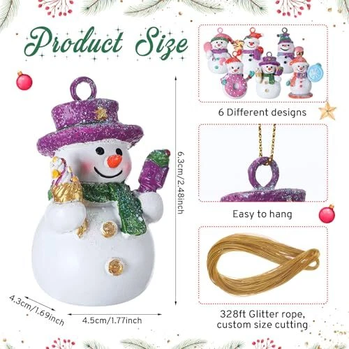 Return Policy Fast Delivery Trusted seller 6 Pcs Pastel Christmas Snowman Ornaments Set Resin Snowman Figurine with Donut Macaron Lollipop Sweet Candy Ornaments for Holiday Christmas Tree Hanging Decor, 6 Styles Product Description Package Including: you will receive 6 exquisite sweet candy colored snowman Christmas tree pendants decorations, the cute snowman Christmas ornaments will make your Christmas tree more attractive; It can also decorate your home and create a warm scene Suitable Size: the cute snowman measures about 1.77 x 2.48 x 1.69 inches/ 4.5 x 6.3 x 4.3 cm, comes with a bundle of about 328ft/ 100 m glitter rope, can be customized to size; The right size is suitable for hanging, making it easy for you to operate and assemble Quality Material: our snowman ornaments are made of 100% quality resin, which is lightweight, sturdy, small and exquisite; You can hang it on the Christmas tree or place it anyw you like as home decoration: living room, bedroom, studio, window, Christmas tree or special viewing point Style Design: t are 6 pieces of snowman Christmas ornaments with 6 different sweet candies such as lollipops, donuts, marshmallows, macarons, etc.; The snowman Christmas ornaments add an impressive decoration to your Christmas tree and holiday decorations Ideal Christmas Gift: this is a Christmas decor gift for friends and family who love holiday candies and snowmen; Its attractive design can create a Christmas atmosp and is suitable for giving to family, friends, guests; Dazzling Christmas designs make your gifts more elegant Shipping Returns Payment Shipping Shipping is FREE to all addresses other than APO/PO boxes in the lower 48 states. All our stock ships from US-based warehouses. Shipped via USPS or UPS (depending on location and package weight) Unless stated otherwise, all orders will ship within 24-72 hours of your payment being processed. Check our feedback to see the great reviews of FAST shipping we offer. Returns Seller does not accept returns Payment We currently accept payment via eBay managed payments only. Once payment is cleared, we will dispatch your shipment within 1-3 business days. Please refer to the "Shipping" tab for more information regarding shipping speed to your destination.