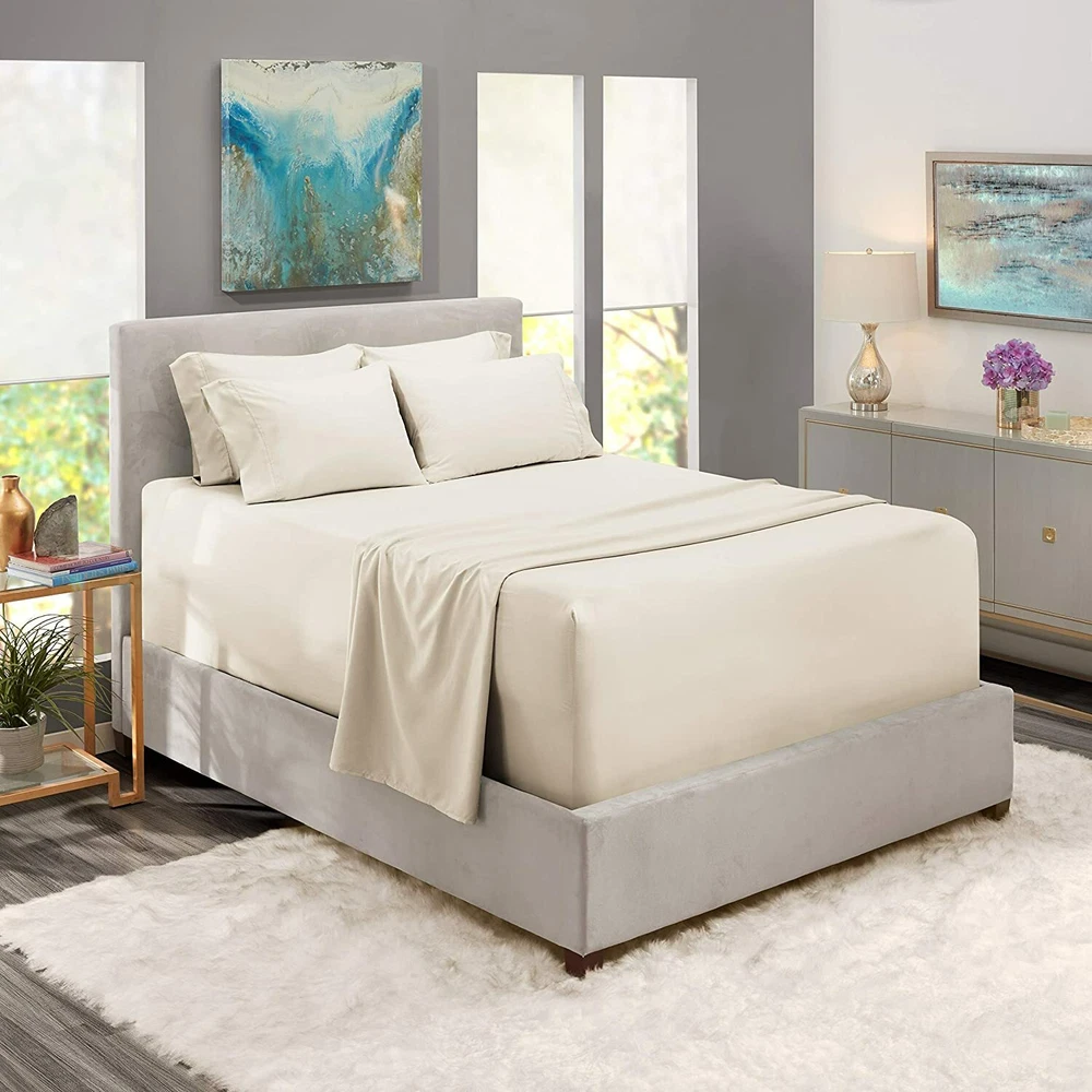 Cotton 100% Pure Cotton. Package Includes: 1 Top/Flat Sheet, 1 Bottom/ Fitted Sheet, And 4 Pillowcases. Queen Size Measurement: 1 Top/Flat Sheet (102X108) Inch, 1 Bottom/Fitted Sheet (76X80X24) Inch, And 4 Pillowcases (20X40) Inch. Extra Deep Pocket Sheet: These bedsheets are for very deep pocket mattresses. They fit any mattress with pockets that are 19, 20, 21, 22, and 24 inches deep mattresses. There's a stretchable elastic around the extra deep fitted sheet which stretches for a nice tug around your mattress. Perfect for extra tall & large mattresses. It is perfect for any room. Highest Quality Best Cotton Sheets: If you love the feel of luxurious hotel sheets and crisp pillowcases, you’ll adore our 800 thread count sheets. We use fine yarns made with extra-long-staple cotton fiber and a gorgeous sateen weave. Our sheets get softer with each wash, lifetime softness, resist fading, they’re incredibly eco-friendly. Great Gift For Any Occasion: This bedding set is not only perfect for your own bedroom, guestroom, living room, but also a great birthday Christmas New Year Gift Idea for boys girls women men child boyfriend girlfriend adults. Surprise your friends and family with these elegant and durable sheets. Care Instructions: Machine washable, wash with similar colors in cold water, recommend to hung dry, do not bleach, cool iron if necessary. bout Us: Super Soft Luxurious and Ultra Soft Best 100 Percent Cotton 6 Pieces Bedding Sheet Set With 24 Deep Pocket (1 Top/Flat Sheet, 1 Bottom/Fitted Sheet & 4 Pillowcases). Give yourself a wondrous night's sleep with this luxurious cotton sheet set. The cotton sheets will envelop your bed in elegance and luxury at a more affordable cost. The fitted sheets are made fully-elastic to ensure a secure fit on mattresses up to 24 inches deep. Available Size: Twin Size, Twin XL Size, Full Size, Full XL Size, Queen Size, King Size, California Size, Customize. Available Colors: Blood Red, Burgundy, Lilac, Olive, Peach, Purple, Royal Blue, Sage, Sky Blue, Taupe, Turquoise Blue, White, Ivory, Elephant Grey, Silver Grey, Black, Pink, Gold, Brown, Chocolate, Hot Pink, Aqua Blue, Yellow.