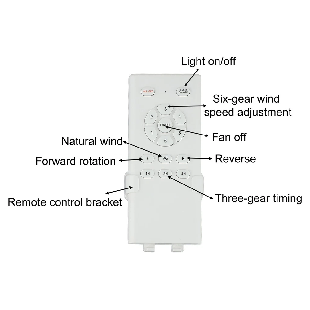 Product Description Features: *Wide Replacement: The Ceiling Fan Remote Control Kit is compatible with most ceiling fan lights, allowing you to easily convert your traditional ceiling fan into a remote control ceiling fan. *Scope of application: Suitable for various settings including homes, restaurants, offices, hotels, clubs, and garages. *Multi-function: Adjust the fan speed with 6-speed settings; Set timers with 3 buttons- 1H, 2H, and 4H; Control the lighting onoff with a dedicated button(no dimming feature). *Convenient Installment: The Ceiling Fan Remote Control Kit comes with a bracket for easy installation, allowing you to place it near your bed. No more getting up to switch off the fan or light after getting into bed. It also helps prevent pets from damaging the remote control. *Strong signal: Enjoy a long control distance with this ceiling fan remote control, which enables you to control your ceiling fan and lights from a distance. Specifications: *Part Name:Ceiling Fan Remote Control Kit *Material: Plastic PC *Size: 135*57mm(remote control), 122*54mm(receiver) *Color:white+black *Voltage: 110V Package Content: 1* remote control 1* receiver Note: 1. The real color of the item may be slightly different from the pictures shown on website caused by many factors such as brightness of your monitor and light brightness. 2. Please allow slight manual measurement deviation for the data. Payment Payment must be completed within 5 days. If you have any problems about payment, please contact us via ebay message. Delivery details We only ship to confirmed ebay Order addresses. Please comfirm that your Order address is in line with your shipping address. Please kindly note that the c ombined shipping is not provided because the shipping fee is calculated by weight. Also, the each additional item means exactly the the same color and size. It takes about 7 -15 working days to US; about 10-30 working days to other countries. Transit time may be a little delayed because of the bad weather and customs inspection . If you do not receive your item within 30 working days since payment finished, please contact us immediately for further assistance. Contact us We strive for 100% customer satisfaction! Positive Feedback is very important to us. If you have any questions, p lease feel free to contact us via "Ask seller a question" . We will reply your email within 24 working hours.