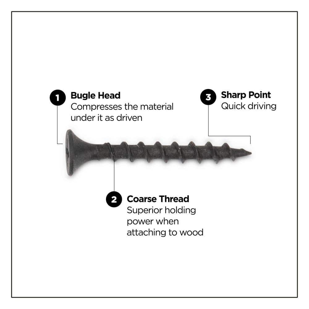 These drywall screws are a game-changer! The sharp point makes driving them in effortless, while the coarse threads grip wood studs securely. The bugle head gives a smooth finish, and the phosphate coating ensures tape and mud adhere perfectly. Lightweight yet strong, they hold drywall firmly in place. Great for beginners—just pick the right length for your board. Highly recommend!