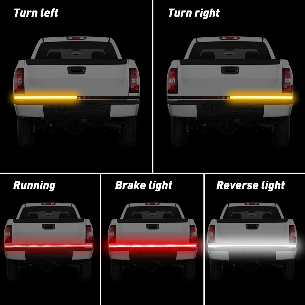 5 Function & 3 Color. The 60'' Quad Row LED Tailgate Light Bar tucks into the recess between your tailgate and bumper for avoid traffic collisions, illuminates in conjunction with your truck’s brake lights, reverse lights, turn signals, running lights and hazard lights in White/red. Turn signals with 3 stage scanning lights Don't be left in the dark. For faster, safer and more enjoyable driving, the tailgate light strip running 624pcs high intensity SMD LEDs with quad row design (400% brighter than single row light), adds a unique custom touch to your rig and the attention of other drivers behind you at day and night 60" 3 Row Truck 432-LED Strip Tailgate Light Bar Reverse Brake Tail Signal Lamp 5 Function & 3 Color. The 60'' Quad Row LED Tailgate Light Bar tucks into the recess between your tailgate and bumper for avoid traffic collisions, illuminates in conjunction with your truck’s brake lights, reverse lights, turn signals, running lights and hazard lights in White/red. Turn signals with 3 stage scanning lights Don't be left in the dark. For faster, safer and more enjoyable driving, the tailgate light strip running 624pcs high intensity SMD LEDs with quad row design (400% brighter than single row light), adds a unique custom touch to your rig and the attention of other drivers behind you at day and night Ready to take on any kind of weather. Seamless design with IP67 waterproof rate and shockproof silicone tube, passed through 50,000 hours working lifespan testing providing the most durable light, to ensure more resistant to dirt, snow and ice accumulations Plug and play without drills. The tailgate light bar comes with 3M double-sided foam tape, just affix the tape and tailor the installation to your vehicle. The 4-pin tow plug comes ready to connect to your factory 4-pin trailer adapter for a true plug and play installation, but if you regularly tow your vehicle’s or without 4-pin adapter you can hard wire the light strip to your vehicle Fit for DC 12 vehicles with 60inch tailgate and TURN, such as Pickup, Truck, Ford, Chevy, Jeep, Dodge Ram, GMC, Toyota, Nissan, SUV, Tractor, Trailers, Cars, RV, VAN, etc. Certified with IP67, CE and RoHS. Make sure the turn light color of your vehicle before purchase. Specification: Type: Quad row LED Tailgate light bar Light Length: 60 inch(150cm) Input Voltage: DC 12-16V LED QTY: 624pcs Luminous Flux: 12000LM Waterproof Rating: IP67 Lifespan: up to 50000 hours Material: Diecast Aluminum + PC Dimension:60*0.62*0.12inch Color:White+Red+Amber Package Included: 1PC x 60INCH Quad row LED Tailgate light bar Item Specifics Light Color Red / Yellow / White Color Temperature 6000K Bulb Fitment Code LED Wattage 12 W Number of Bulbs LEDs Suitable For Brake Light Center Brake Light Emergency Light Light Bar Reverse Light Tail Light Third Brake Light Warning Strobe Light Brand AUXITO Type LED Strip OE/OEM Part Number 9070343 Voltage 12 V Features Easy Install Self-Adhesive Three Row Led Light Strip Vintage Part Yes Universal Fitment Yes Bulb Life Hours Up to 30,000 Hours Performance Part Yes Lighting Technology LED Manufacturer Warranty 1 Year Model 60" Car Tailgate LED Strip Light Bar Manufacturer Warranty 1 Year Model 60" Car Tailgate LED Strip Light Bar Payment 1. We can only accept payment from PayPal. 2. Please keep the consistency of Paypal address and ebay address. Shipping 1. All items will be shipped in 12 hours after receiving your payment . 2. We ship this item to US only via USPS first class mail. It usually takes 3-5 working days to deliver. Returns 1. We offer 30 days return policy. 2. Please contact us within 30 days from the date you receive your package if you have any questions with the products . 3. Refund will be sent after we got your returned package. 4. All returned items should be in the original packaging with tracking number. Contact Us We work from Monday - Saturday 9:00AM - 6:00PM, but we will reply once we get your message. There will be delay on response if you send message or E-Mail on Sunday. DESCRIPTION PAYMENT SHIPPING RETURN POLICY CONTACT US Shop Category Store Home Other Hot Item For 2002-2008 Dodge Chrysler Stereo Car Radio Wiring Harness Adapter USD 11.59 Universal Car Windshield Wiper Squirter Washer Nozzle Spray Jet Kit Fluid Hose T USD 9.99 1set Control Knob Speed Fan Heater A/C For Jeep Wrangler TJ 99-06 5011218AA USD 9.99 Rear Left or Right Outside Door Handle for 2010-2016 Toyota 4Runner Lexus GX460 USD 14.99 Door Latch Cables LH+RH Front For 2007-2013 Chevy Silverado 1500 2500 HD 3500 HD USD 17.99 New List Item Windshield Rubber Molding Seal Universal Trim for Windscreen and Windows 10FT USD 10.99 2PCS LED License Plate Tag Light Lamp for 2009-2014 NISSAN CUBE High Power White USD 14.99 Passenger Side Power Switch Seat for 2006-2020 Dodge Jeep Chrysler 56049432AE USD 20.99 Amber Smoked Running Strip LED Lights For Trailer Truck Signal lights Waterproof USD 13.89 Beige Leather Car Seat Covers Auto Front Seat Leather Protect Pad Breathable Kit USD 23.99 Excellent Delivery 60" 3 Row Truck 432-LED Strip Tailgate Light Bar Reverse Brake Tail Signal Lamp 5 Function & 3 Color. The 60'' Quad Row LED Tailgate Light Bar tucks into the recess between your tailgate and bumper for avoid traffic collisions, illuminates in conjunction with your truck’s brake lights, reverse lights, turn signals, running lights and hazard lights in White/red. Turn signals with 3 stage scanning lights Don't be left in the dark. For faster, safer and more enjoyable driving, the tailgate light strip running 624pcs high intensity SMD LEDs with quad row design (400% brighter than single row light), adds a unique custom touch to your rig and the attention of other drivers behind you at day and night Ready to take on any kind of weather. Seamless design with IP67 waterproof rate and shockproof silicone tube, passed through 50,000 hours working lifespan testing providing the most durable light, to ensure more resistant to dirt, snow and ice accu