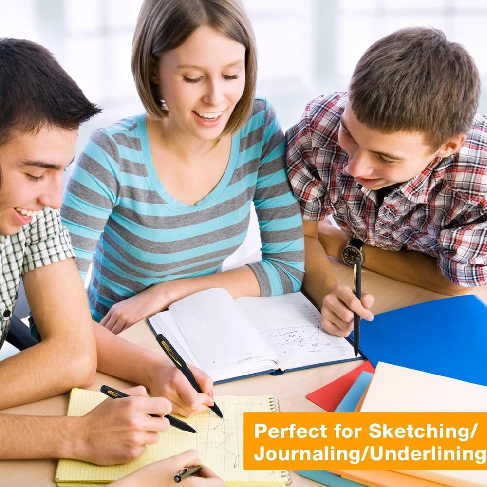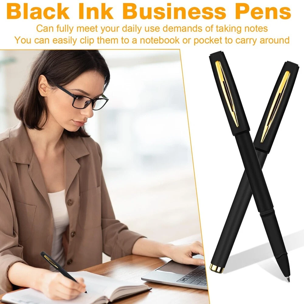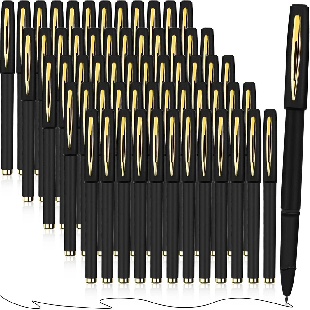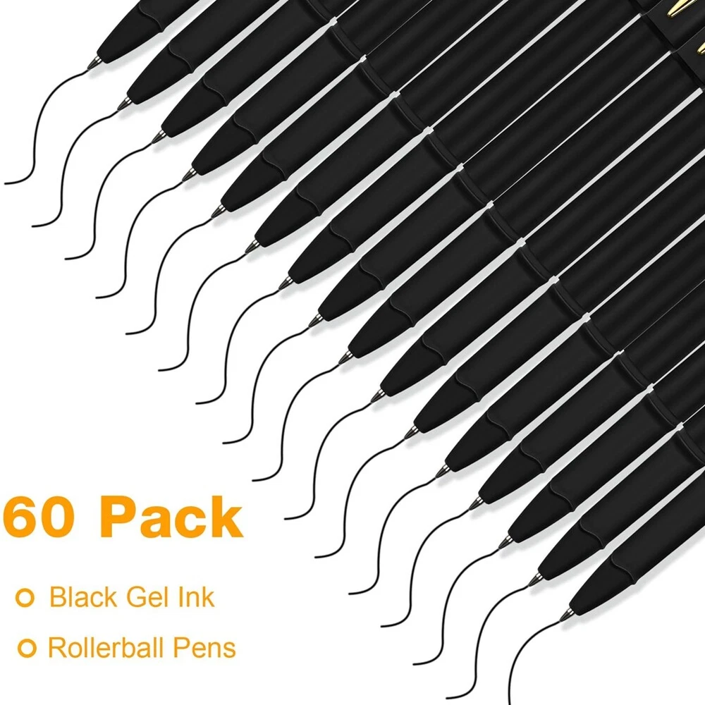 60 Pcs Black Gel Ink Pens Rollerball Pens Bulk Ultra Fine Point Roller Ball9001 Bulk Black Pens: This set includes 60 ultra-fine point black gel ink pens, perfect for office and school supplies. Ideal for distributing among students or colleagues, these pens as reliable backups and are designed for extensive writing tasks without paper bleed-through. Precision Writing: Equipped with a 0.5 mm bold point, these pens offer a smooth, reliable writing experience on various paper types. The ink flows seamlessly, ensuring crisp and clean lines every time you write, making them suitable for professional and personal use. Ergonomic Design: Designed for comfort, these gel ink rollerball pens fit snugly in your hand, allowing for hours of pain-free writing. Each pen features a sturdy metal gold clip for easy attachment to or papers, preventing loss and accidental rolling. Portable Convenience: Measuring approximately 5.51 inches in length, these bold point ink pens are compact and easy to carry. Whether you're traveling for business or heading to a meeting, these pens are conveniently portable and for use. Classic and Functional: With a simple yet classic design, these business pens are suitable for various important occasions. The protective pad on the pen cap prevents ink from drying, ensuring the pens remain ready for your next writing task. Colour:White Material:Plastic Package Contents: 60x Gel pen