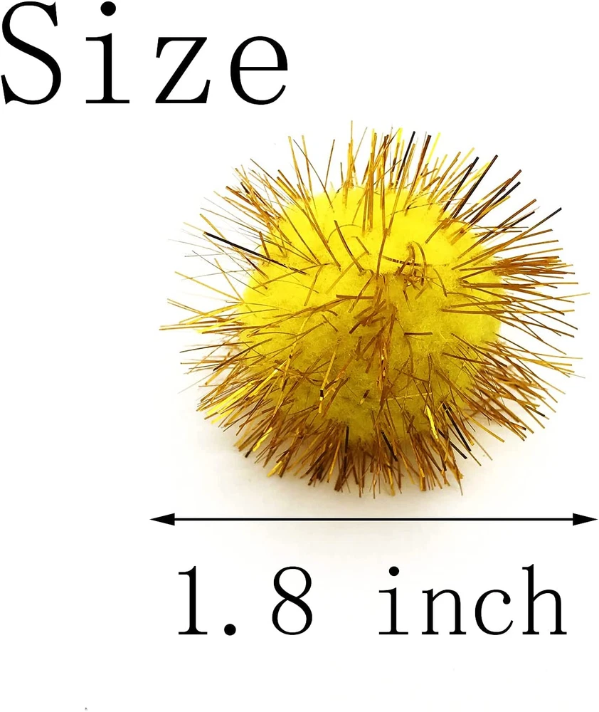 Package includes: 60 plush cat balls toys. Random Color. Sufficient quantities and different colors can be used for a long time to make your favorite crafts. Proper size: the colorful tinsel ball is about 1.8 inches in whole diameter and is about 1.4 inches without tinsels. Material: The sparkle balls cat toys are made from polypropylene fiber, there are soft and tough, has high resilience, and does not hurt the paws of pets. Best Toys: Plush balls can be used for entertainment with cats playing, learning in play, playing in learning, and shiny plush balls can attract interest and add more to the life pleasure.NOTE:If your cat likes to swallow or bite the glitter ball, please buy with caution it to avoid the cat swallowing the ball. Wide usage: Plush balls are very suitable for Christmas decoration, party decoration, school event decoration, cat toys, DIY crafts, and can be used everywhere in life. Create your own artworks with these pompoms, stimulate your imagination and creativity.Assorted colors, fit for making handmade doll, crafts and it can fit various kinds of decorations.Great for garland, fringe, parties, decorations, handmade gifts, school projects, camp projects and more. Quality Efficiency: that every product of our MYYZMY has been carefully selected and inspected, If you encounter any unpleasant reasons, please contact us in time.