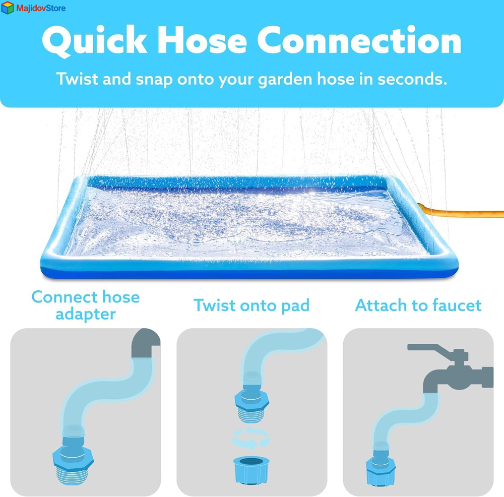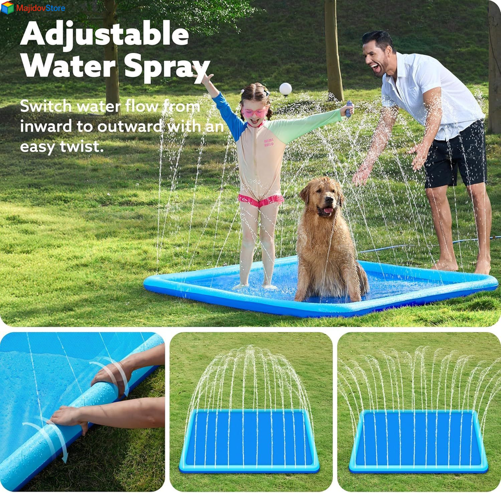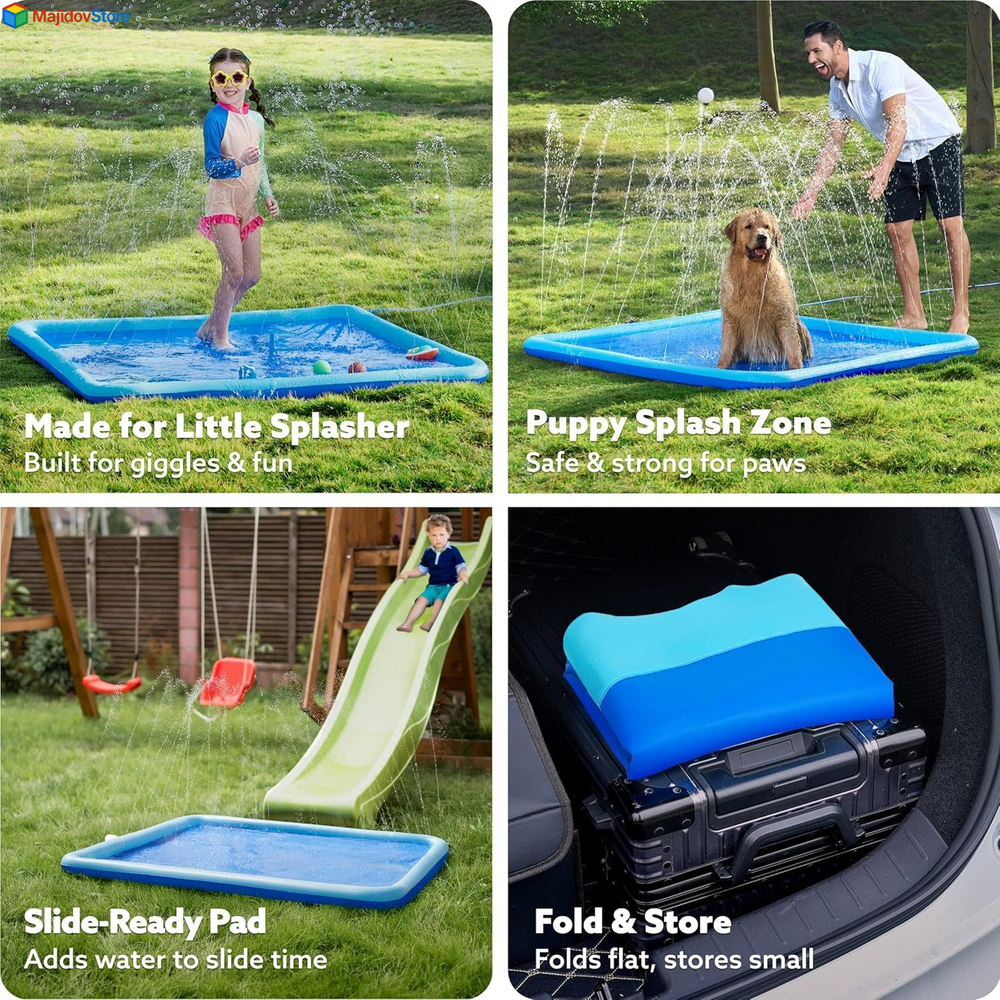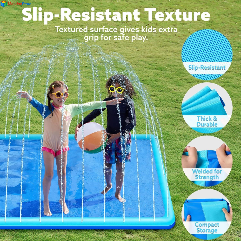 SLOOSH Non-Slip Splash Pad Sprinkler - Summer Water Toys 5ft, Blue Description Features: VIBRANT BLUE DESIGN: Bright and colorful blue splash pad designed to attract and entertain kids during hot summer days. SAFE FOR KIDS WITH ONLY SHALLOW WATER, NON SLIPPERY SURFACE: Provides a safe water experience with shallow water levels and a non-slippery surface to ensure kids' safety while they play. EASY TO CONNECT & ADJUST WATER HEIGHT: Simply attach to a garden hose for an instant splash zone. Control the water spray height by adjusting the water volume to your preference. DURABLE, NON-TOXIC MATERIAL: Made from thick, high-quality material that is both safe for children and long-lasting for outdoor play. COMPACT AND EASY STORAGE: The lightweight and foldable design makes it easy to store and take along to any summer adventure, from backyard fun to beach outings. Product Details: Age Range (Description): Kid Product Dimensions: 3 x 2 x 1 inches Item Weight: 3.87 pounds Country of Origin: China Manufacturer recommended age: 36 months - 12 years Manufacturer: Joyin US Corp Handling We will ship all orders within 2 business day of payment. Delivery We Do Not Ship Outside of the Continental US. Return Policy All items qualify for returns within 30 days of receipt. Buyer is responsible for return shipping on any item that is not damaged. Feedback We take our reputation seriously, we buy and sell online, so we understand the value of trust. If you are unsatisfied with your order, please contact us and we will work with you to resolve it to your satisfaction.