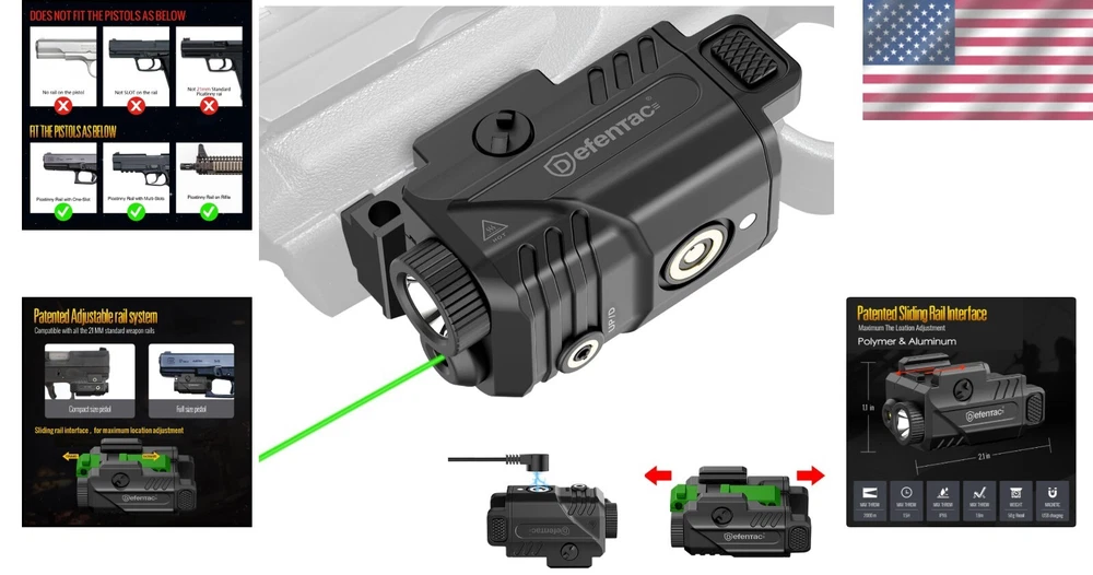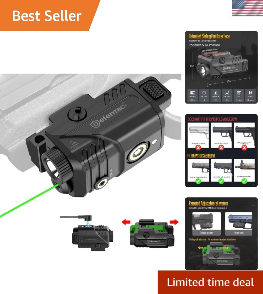 600 Lumens Tactical Flashlight with Green Laser Combo, Magnetic Charging ‹ › ‹ › ‹ › ‹ › ‹ › ‹ › ‹ › ‹ › ‹ › 600 Lumens Tactical Flashlight with Green Laser Combo Enhance your tactical experience with our state-of-the-art 600 Lumens Tactical Flashlight featuring a Green Laser Combo. This exceptional device is designed to deliver reliability and performance in any situation. Features: Maximize your efficiency with a versatile Magnetic Charging feature. Sliding Rail allows maximum location adjustment on the 21MM rail. Fits any pistol equipped with a 21MM width rail with a cross slot. Boasts a Bright & Adjustable Green Beam with an output less than 5mW, Class IIIA. Compact design includes included Elevation and Windage Allen Key for zero adjustment. Multiple Tactical Modes: Steady/Strobe Tactical Flashlight; Green Beam only; Steady/Strobe Flashlight + Green Beam. Shockproof and powered by a built-in rechargeable battery. Quick recharge time of approximately 2 hours via magnetic USB cable. Long-lasting battery support: 4.5 hours for green beam; 45 minutes for flashlight & green beam; 60 minutes for flashlight only. Red light indicator alerts for low power to ensure you’re always prepared. Benefits: Unmatched brightness and precision for enhanced visibility in any environment. Tactical versatility with adjustable modes to suit your needs during critical missions. Rugged design ensures durability and shock resistance, perfect for tactical scenarios. Convenient magnetic charging provides hassle-free power replenishment. Efficient battery life guarantees readiness for your next adventure. Why choose our Tactical Flashlight with Green Laser Combo? Elevate your tactical gear with our 600 Lumens Tactical Flashlight featuring an advanced Green Laser Combo. This model is specifically designed for pistols with a 21MM rail, ensuring seamless compatibility and ultimate performance. With its bright adjustable beam, multiple modes, and quick recharge capabilities, you can take on any challenge with confidence. Don't compromise on safety or effectiveness—invest in a tactical solution that empowers you. Order your Tactical Flashlight with Green Laser Combo today! Shipping Free & Fast Shipping - We offer free shipping to most of the USA with a normal delivery time of 3-7 days. However, due to the current situation, additional delivery time (up to 3 weeks) may be required for some items. Alternative Carriers - We may use alternative carriers (e.g. USPS, FedEx, UPS, etc.) to ensure your package arrives safely and on time. Due to the use of multiple carriers, we are unable to provide a tracking number automatically. Handling Time - Orders are processed and shipped within 1-2 business days of receiving cleared payment. Shipping Restrictions - Shipping to Alaska, Hawaii, Puerto Rico, Guam, and other US territories may incur shipping charges or delivery restrictions. Please contact us before ordering, or your order can be refunded/cancelled. State Restrictions - There may be restrictions based on your state of purchase. For example, certain items may not be shipped to California due to state regulations. Contact for Tracking Updates - If you require tracking updates or have any concerns about the delivery of your order, please feel free to contact us, and we will be happy to assist you. Return 30-Day Hassle-Free Returns - We want you to be completely satisfied with your purchase. If you are not, you can return the item within 30 days of receiving it for a full refund or exchange. Easy Return Process - To start a return, simply contact us and we will provide you with a prepaid return shipping label and detailed instructions. Restocking Fee - There are no restocking fees for returns. However, the buyer is responsible for return shipping costs if the return is not due to a seller's error. Refund Processing Time - Refunds will be processed within 5 business days of receiving the returned item in its original condition. Payment We accept all major credit cards, PayPal, and Apple Pay for your convenience. Your payment information is secure and encrypted to ensure a safe and seamless transaction. Please complete your payment within 3 days of purchase to avoid any delays in shipping. Feedback Your feedback is extremely important to us. We strive to provide the best products and customer service possible. If you are satisfied with your purchase, please take a moment to leave us a positive review. If you have any concerns or issues with your order, please contact us before leaving negative feedback. We are committed to resolving any problems and ensuring your satisfaction. Contact Us If you have any questions or concerns, please feel free to reach out to our customer support team. You can contact us through the eBay messaging system. We are available Monday to Friday, 9:00 am to 5:00 pm EST, and we will do our best to respond to your inquiry within 24 hours. Buy it now and enjoy a pleasant shopping experience! UPC: 744759680310 Voltage: Not Set Item Height: Not Set Item Length: Not Set Item Weight: 0.24 pounds Item Width: Not Set Model: Not Set Lumens: 350 Lumens Number of LEDs: Not specified Unit Quantity: 1 Sport Type: Hunting Magnification Minimum: Not applicable Night vision: No Compatible Devices: P365 Sport: Hunting Style Name: Picatinny Rail Enclosure Material: Aluminum and Polymer Mounting Type: Picatinny Rail Mount Material: Aluminum,Polymer Features: Rechargeable,Adjustable Rail,Lightweight,Low Profile,Mountable,Adjustable Tactical Modes,Magnetic Recharging,Shockproof Brand: Unbranded Type: Flashlight Lighting Technology: LED Power Source: Battery Operating Range: 100 ft MPN: Not Set Number of Batteries: 1 Battery Technology: Lithium Polymer Color: Green Country/Region of Manufacture: Not Set Operating Time: 1 hour IP Rating: Not applicable Number of Lights: Not specified Unit Type: Not Set Personalize: Not Set