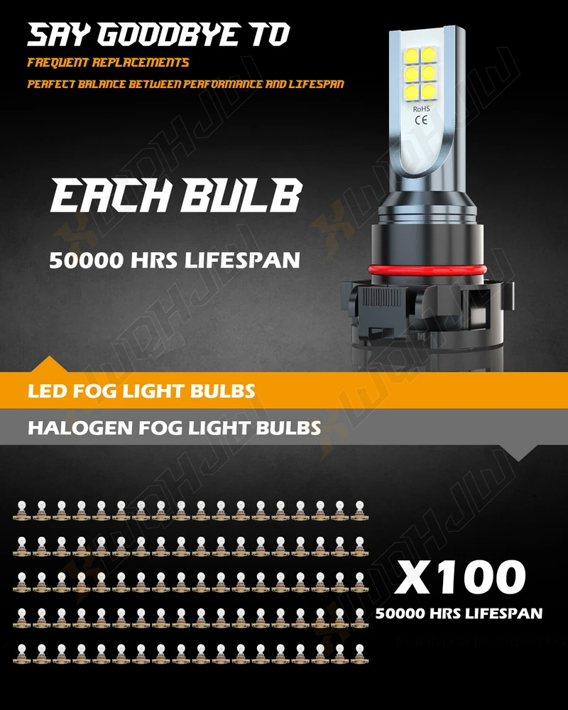 ● XWQHJW Advantages: Firstly, the lens design projects the light farther away while forming a focused beam, which will not dazzle oncoming vehicles. Secondly, each bulb is equipped with 12 LED chips (most bulbs have only 6 chips) to achieve 360-degree illumination ● Installed in 10 Minutes: Compact design makes it one of the fog light closest to the size of halogen on the market. No decoder and any tools are needed to achieve 10-minute plug-and-play ● Fitment: Compatible with 5202/2504/H16 as fog lights or DRL, matching 98% of vehicles. Please refer to your vehicle’s owner’s manual or search for 'Compatibility' to confirm the model ● Over 50,000 Hours Lifespan: All-in-one aluminum material has strong heat dissipation capacity, don’t worry about changing the bulb frequently. Get 1 XWQHJW fog light, equivalent to 100 halogen bulbs ● What You Get: 2 Pack 5202/2504/H16 led light, safer driving experience and friendly customer service indefinitely Key Features How Do I Know These LED Bulbs are Right for My Vehicle? Plese check the size on Ebay fitment guide system ( Ebay filter system may not be up to date. ) Plese check your vehicle user manual or original halogen bulb, the part number is marked above. Plese search "automotive bulb look-up" online, and enter your vehicle info to find out the correct size. Or in 'Customer questions & answers', write down your vehicle year, make, and model, we will help you check. XWQHJW Q&A RETURNS SHIPPING PAYMENT CONTACT US XWQHJW Q&A Q1: Will this bulb fit my vehicle? A1: We can match almost any vehicle to one of our bulb sizes. eBay only lets us include some vehicle fitments per listing, but if your vehicle does not show up on the compatibility table at the top of our listings, welcome you to contact us for free consulation before purchasing a product. Q2: My item has not arrived, what's taking so long? A2: Sometimes items take longer than expected, especially if it’s going far or to rural area. Check with your post office to see if your item has been held up. Sometimes Royal Mail will not update a tracking number until it has arrived at its destination. If your item still don't arrive after a few days, let us know so we can double check for you and help solve it asap. Q3: My bulbs won't fit, help! A3: Special bulb holder may be required. See if you can take the holder from the stock bulb. If not, let us know. The bulb size may be wrong, double check the item you received with the item you ordered. Do you have an aftermarket lighting housing? These may not be perfectly fitted for aftermarket bulbs and will require some manual modifications. Q4: Neither side lighting up? Both sides flicker, hyper flash, or work inconsistantly. A4:Check the light fuses, and then check the ballast plugs to insure correct installation. If this doesn't work, there may be a voltage problem with the vehicle. You probably just need a relay or capacitor. Even though some bulbs are builtin resistors, they may still need a decoder. Q5:Why after installing the bulb, there have the flicker/error message/radio interference? A5: Some car's system is sensitive to the led bulb, we can send the decoder/resistor to help you solve the problem. RETURNS (1) We offer 60 days return policy. Please contact us within 60 days t from the date you receive your order if you have any issues with the product or want return .Refund will be send after we got your resend package. (2) All returned items should be in the original packaging , return tracking information should be provided. (3) Buyer is responsible for return shipping cost due to the problem not caused by item quality itself. (4) Items to be returned must be in resalable condition, for example: Item do not fit your vehicle perfect The item arrived be broken Parcel Lost If you have problems with the above issue, please Contact Us immediately. SHIPPING Domestic(U.S.) Shipping All items will be shipped out within 1 or 2 business days with cleared payment. Please included your phone number to the payment note for prompt and secure shipment. Tracking numbers for all orders are added to eBay once they have been dispatched; please login to eBay to find the tracking information for your order. Most items are shipped USPS first class mail, delivery usually takes just 4-6 business days. Additionally, we do not ship on weekends. International Shipping Puerto Rico: As we use standard USPS, PR is considered a US territory for mailing purposes, and can be selected as such at checkout. Shipping will be domestic U.S. rates. For Canada & Mexico or other countries We use the eBay's Global Shipping Program. Once you’ve paid for your item, we'll send it to the global shipping center within 1 or 2 business days. From there, it's sent to you. Lost Shipments For non-signature required shipments: If the tracking information that corresponds to a shipment confirms that the product was delivered to the intended address, the customer assumes all responsibilities and liabilities for the receipt of the shipment.The Customer is the one who provided XWQHJW with the ship to information, and in doing so absolves XWQHJW of any liabilities for missing or stolen deliveries. Customs Fees for International Shipping Shipments are marked with the value of your purchase price. International customers are responsible for any tariffs or customs fees that may be associated with their shipment. Please check your country's laws and regulations before your purchase. PAYMENT Variety of payment methods are accepted, such as credit, debit, gift cards, Apply pay, Google Pay, Paypal and Paypal Credit. We only ship to the confirmed shipping address given with the payment. If you want to ship to other address, please change your shipping address before you make payment. To avoid initiating an unpaid item claim, please pay within 7 days. CONTACT US If you have ANY questions with shipping, product or service, please Contact Us first before leaving feedback/write a review or fili