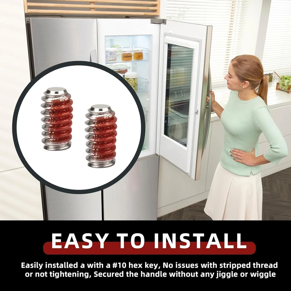 6009-00Refrigerator Freezer Door Handle Set Screw Red Product Details Material: Stainless Steel Brand: Adabuing Color: Red Product Dimensions: 2.36"L x 1.57"W Exterior Finish: Stainless Steel Handle TypeFinish Type: Pull HandlePolished Metal TypeHandle Material: Stainless SteelStainless Steel Set Screw for Door Handle Easy to Install : Easily installed a with a #10 hex key, Screw fits, easy to install, holds well, No issues with stripped thread or not tightening, Secured the handle without any jiggle or wiggle, It is important to disconnect your appliance from the power supply before servicing. Compatible : Fit perfectly on the freezer door handle, Compatible with Brands Samsung, Kenmore and most Top Brand Refrigerators, Replaces 2029618, AP4458473, PS4133423, EAP4133423, Compatible With Most Samsung Refrigerators including DFSF9VKBABB DFSF9VKBAWW DFSS9VKBASS DRF36C100SR/DA DRF36C100SR/DA DRF36C100SR/DA DRF36C100SR/DA REF-SEM1/SVC RF18HFENBSG/US RF18HFENBSG/US RF18HFENBSR/US RF18HFENBSR/US RF18HFENBWW/US RF18HFENBWW/US RF20HFENBBC/US RF20HFENBBC/US RF20HFENBSG/US RF20HFENBSG/US RF20HFENBSR/US RF20HF, Please Check Description for Model Compatibility. High Quality : Our Set Screw for Door Handle Made of high-quality materials and precision processing technology to ensure its high strength and wear resistance, and durability, Is the best choice for Refrigerator Door Handles . Good Service : Please rest assured to buy, If you have any questions about our Samsung Refrigerator Set Screw for Door Handles any questions can feel free to contact us, we will reply within 24 hours, to provide you with good after-sales service.