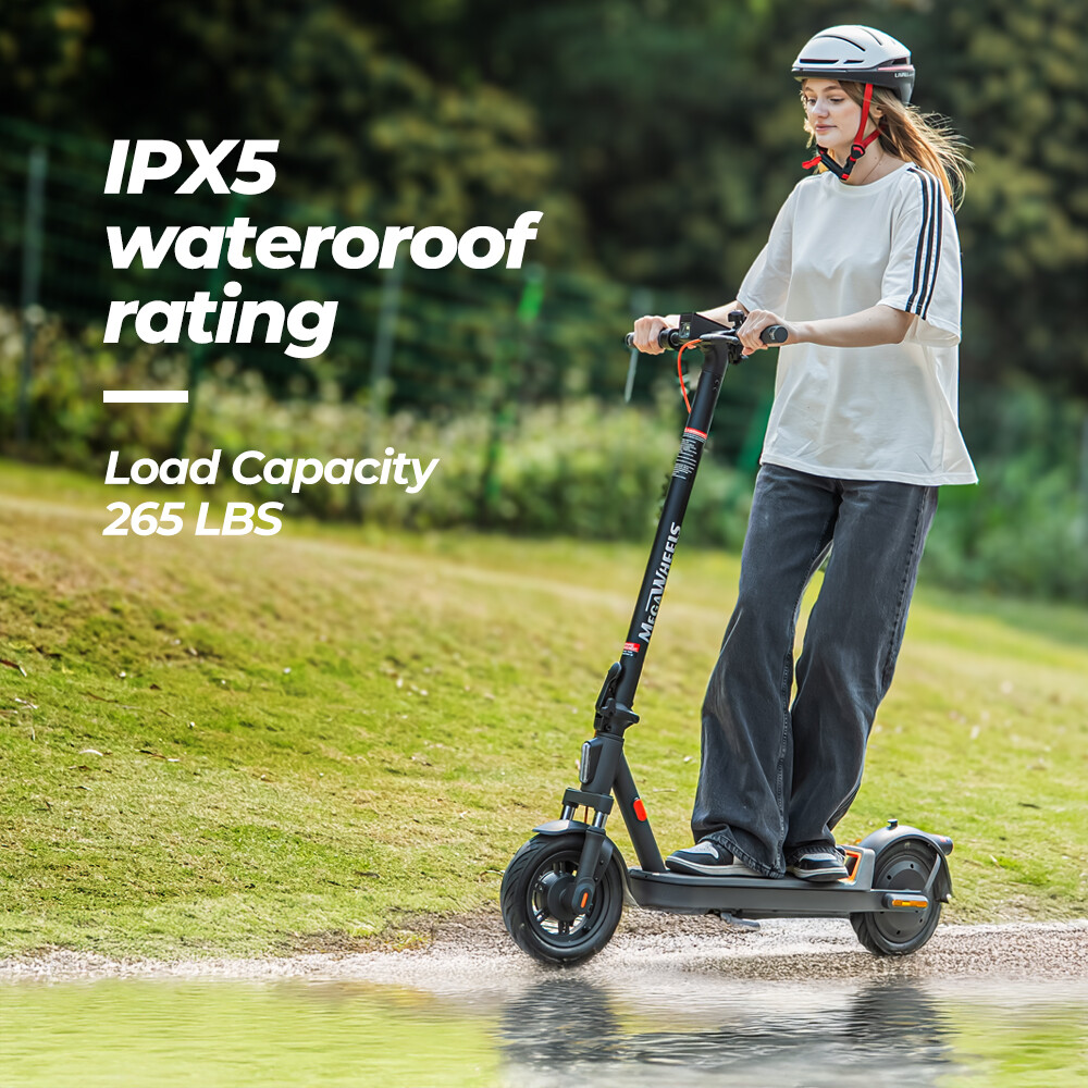 Specifications: Product Name :Electric Scooter Model :E2 Dimensions Vehicle: L × W × H (in) 46.22×20.94×48.89 After Folding: L × W × H (in) 46.22×20.94×21.26 Net Weight Vehicle Net Weight (lb): 44.35 Max. Load (lb) : 265 Age (years) :12+ Height (in): 55~78 Max. Speed (mph): 20 Max Range (mile) :Approx. 28 Max. Climbing Angle (%) :Approx. 20 Suitable Surfaces :Cement or asphalt road, with benches of less than 1 cm or crevices narrower than 3 cm Operating Temperature (°C): -10 to 40 Storage Temperature (°C) :-20 to 50 Charging temperature range(°C): 0 to 40 IP Rating :IPX5 Charging Time (h) :8 Intelligent Battery Management System: Over-heating, short circuit, over-current, overdischarge, and over-charge protection Normal Charging Temperature Range (°C) :0 to 40 Rated Capacity (Ah) :10.2 Input Voltage (VAC) :100-240 Tire : 10" Pneumatic tire Shock Absorption: Front 30-mm Front Twin-tube Shock Absorber Package Contents: 1 * Electric Scooter 1 * Battery Charger 1 * User's Manual Note: Our products have been certified under UL2272 safety standards.