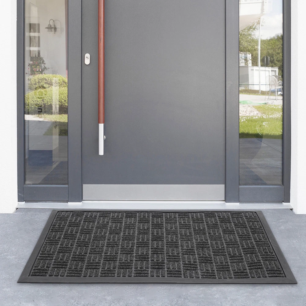 60*90CM Gray Front Door Mat, Outside Entrance Doormat, Door Mat for Entryway Description Description The warmth of home, from the first step into the door to start ——for you to recommend our entry floor mats, a set of beauty, practicality, and quality in one of the good home products. It is made of high-quality materials, after exquisite craftsmanship, easy to adapt to a variety of home styles, and instantly enhances the overall home style, highlighting the unique taste. It has a unique non-slip design, for your safe plus an invisible line of protection, so that you and your family are in and out more at ease. Shop now and make every step home full of warmth and happiness! Key Features Sturdy and Durable: The product is made of high-quality polyester and synthetic rubber, using a hot melt implantable process to firmly bond the top layer (polyester surface) to the base layer (synthetic rubber bottom), with high strength, fade-resistant, eco-friendly, and non-toxic. Keep Indoor Clean: The product's surface features a grooved design that creates a retention dam to help catch dirt, dust, and other stray debris from getting inside. The high-quality polyester fabric on its surface absorbs moisture. The high edges around the doormat can effectively catch excess water, preventing the floor from getting wet on rainy days. Humanized Design: The non-slip rubber bottom gives the product a good grip on the ground, thus you can provide higher safety for your family to use. Also, the three-dimensional textured design increases its surface friction to prevent you from slipping. Ready to Use: This product is molded in one piece, so you can use it as soon as you receive it, eliminating the need for complex installation. Adjustable Size: This product is cuttable and foldable, so you can cut it to any size and shape you need for different-sized entries. Easy to Clean: Its simple construction allows you to easily clean it with water and a dust catcher for your convenience. Convenient Storage: Thanks to its good toughness, it can be rolled up and stored without taking up too much space. Stylish Design: The grey color and minimalist design make this product modern and stylish, which blends well with other furniture decorations. Nice Gift: Thanks to its minimalist design and practical function, you can choose this product as a housewarming gift for your friends. Details Soft Edges: It has soft material on all sides for easy curling. Suitable Thickness: The 5mm thickness can prevent water from seeping into the floor and gives the product good shock absorption and tear resistance, making it soft and comfortable to step on. Moreover, It won't hinder the door from opening and closing, ideal for daily use in high-traffic areas. Application This product is suitable for indoor and outdoor use, such as entrance hall, bathroom, toilet, living room, hotel lobby, office, office building, gate, pavement, patio, garage, barn, driveway, and so on. Specifications Material: Polyester, Synthetic Rubber Process: Hot-melt Planting Style: Morden Color: Grey Mount Type: Floor Mount Shape: Rectangular Assembly Required: No Thickness: 0.5cm/0.2 in Gross Weight:1.7kg/3.75 lbs Net Weight: 1.62kg/3.57 lbs Product Size: 90*60cm/35.43*23.62 in Package Size: 62*11.5*11.5cm/24.41*4.53*4.53 in Package Included 1* Entry Floor Mat Notes Please note that the product is shipped rolled up, but it still lays completely flat immediately when you use it. Please note that mat sizes are approximate as rubber shrinks and expands in conjunction with temperature and time. Please keep it away from fire, flammable materials, hazardous materials, scrapers, and other sharp objects. If any odor is found after receiving the product, please ventilate the product in a cool place for 2-3 days. If you are particularly sensitive to odors, you can extend the ventilation time. Please allow the slight color difference caused by the shooting light and 1-3cm error due to manual measurement, and make sure you do not mind before you order. https://image.pushauction.com/0/0/548d9de0-d28e-4a5a-9f1b-de1fd6e274a4/dfe4bf42-f598-4c65-b86e-6b20ea8cd11c.JPG Payment Delivery details Terms of sales About us Contact us Payment We accept ebay payment 。 Fees such as import duties, taxes are not included in the item price or shipping costs. These charges are the buyer's responsibility. Delivery details Shipping: 2-9 working days to: USA Terms of sales We maintain high standards of excellence and strive for hundred percent customer satisfaction. Feedback is very important to us. We hope that you contact us immediately before you give neutral or negative feedback, so that we can address your concerns. It is impossible to address issues if we do not know about them! About us Your satis faction is our ultimate goal. We work hard to earn your trust and future business. Our certified technicians have tested each item before shipping. The unit comes with 1 year limited warranty on all manufacturing defects. a) If you receive a defective item, you may return it or ask for a discount. Please contact us within 14 days after you receive the package. b) What you returned must be intact and in its original packaging as re? u. Customer is responsible for shipping costs of the returned item. c) We will cover the cost of shipping back t with the shipping rate indicated in the registration page. We will send you a new unit or refund the full payment you paid. Thank you. Contact us Business Hour Business Hour: Monday To Friday: 8:30 AM to 5:00 PM (Beijing China time) Due to time zones, our reply to your questions may not be immediately. But within above working time, we will reply your email within 24 hours. If it's non-workdays, please kindly be patient and wait till Monday. Please contact us with ebay message. Please feel free to contact us if you have any questions. Monday To Friday: 8:30 AM to 5:00 PM (Beijing China time) Due to time zones, our reply to your questions may not be immediately. B