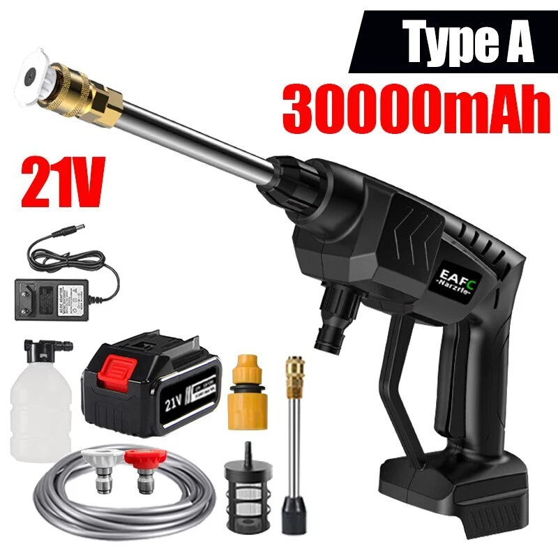 Specification : 100% New: We check every machine with water. it flow out some water is normal Product name: Wireless car washing machine Material: ABS and copper Power Supply:Lithium battery Weight:20000mAh (2.09KG) /30000mAh(2.34KG) Product pressure: 60Bar Drive: Lithium battery wireless drive Speed: 20,000 rpm Maximum flow: 10L/min Jet stroke: 6-10 meters Color classification: 10-section floor-standing wireless car washer, 15-section floor-standing wireless car washer Water pipe length: 5 meters Car washing equipment type: household car washing machine Water source type: faucet self-priming Scope of application: car washing, watering flowers, watering vegetables, spraying, garden cleaning, etc. Features : 1. Special material waterproof, water and electricity isolation is safer 2. Self-priming/faucet 2 water inlet methods, more convenient to take water 3. 3 Water types adjustable 4.With temperature protection function, automatic shutdown of over temperature and overload, eliminating safety hazards 5.Large amount of water, easy to absorb water 6. A variety of high-quality extension accessories, cleaning is more convenient and clean 7. Multifunctional high-pressure cleaning, very suitable for car washing, garden watering, agricultural irrigation and daily cleaning 8. Simple installation, quick plug-in installation of all interfaces Package included: 1x Washing Machine 1x Lithium battery 1x Charger 1x 5m Water pipe 1x 0° Outlet head 1x 45° Outlet head 1x Coke bottle adapter 1x Extension rod 1x Filter 1x Foam pot 1x Manual Q & A Q & A Q1: Why does the car washing machine not start after turning on the switch?he water pressure so small? A1: Maybe the battery is out of power, please charge Q2: Why is there no water after turning on the car washing machine A2: Observe whether the water pipe is bent and the water cannot be released; press the car washer for more than 15 seconds and wait for the water to be sucked into the car washer Q3:Water leaking from multi-function nozzle,Sudden increase in water pressure A3:The multifunction nozzle is blocked,replace the nozzle Q4:Water flows out after the machine is turned off A4:There is water residue in the pump door after the machine is turned off Q5:Foam bottle can't spray ? cleaning agent A5:Drain the water completely before storing foam bottle clogged,clean with water Q6: It can be started, but there is little or no water from the nozzle? A6: It may be that the water connector is not pressed tightly. Press the water connector directly twice for the second time until you hear a click. It may be that air has entered the fuselage or the water pipe. You can directly fill the fuselage with water with a tap to drain the air, and then spray water by self-priming. Q7: Battery indicator light off? A7:Use a screwdriver to disassemble the battery case, and press and tighten the four iron pieces at the four corners of the circuit board. Q8: Battery charged but won't start? Product does not start? A8:It may be because the inserts inside the machine are loose or wet. Use a screwdriver to disassemble the battery case to see if the battery circuit board is wet. If it is only a little wet, it can be air-dried. If the entire circuit board is wet, scrape off any rusted areas and air dry. If it is not wet, just clamp the corners of the battery circuit board and a few iron pieces in the middle. If you don't know how to disassemble the machine, you can try knocking the gun head down on the ground or on the table a few times. During use, be careful not to seepage of water in the battery, it will be recharged every time it is used up, and the battery will be thrown upside down. If you encounter any questions that you don't understand, please contact customer service to handle it for you! grateful! Warm Tips: 1.After the car wash machine is used, it should run empty for a few seconds to drain the residual water in the machine, avoid oxidizing dirt and freezing for weather reasons, and store it in a dry and cool place. 2.Do not store in the trunk of the car in hot weather to avoid fire caused by high temperature. 3.Batteries need to be kept away from water.Remove the battery after use, so as not to High Pressure Car Washer Up to 50 minutes of battery life High-rise/outdoor/garage 300W Copper motor A good machine needs a strong heart. It can work continuously at 20000rpm and has a long life without burning the machine. Crankshaft connecting rod 6 cylinder water pump : Super powerful running force connecting shaft 6-cylinder cylinder technology 52V is full of power and strong pressure Stable operation, less vibration and quieter Small size and light weight Other water guns/triple plunger pumps : The traditional three-piston pump has low pressure Only supports 12V voltage Unstable operation Short service life High-strength compression technology Range up to 6~10 meters After repeated adjustments to the water pressure by German institutional designers, the precise arrangement of the water pump head was determined, which greatly improved the cleaning efficiency of the water outlet pressure to ensure the lasting pressure. Power surging Multifunctional nozzle Switch water type at will Meet different car wash needs 0 ° Outle t/ 45 ° Outlet Metal long nozzle Sealed and waterproof body Vents Water inlet Start trigger Car wash handle lithium battery Product parameter : (Manual measurement, there is an error of 1-2cm, please refer to the actual product.) P roduct name: High Pressure Car Washer Product Size : 37*20*8cm Limited Data : 10L/min Peak pressure:60 bar High Pressure Mode Wash stubborn stains Fan Spray Mode Large area flushing Dedicated Foam pot spray Can be used to spray pesticides Automatic water absorption design Unlimited venue, available anytime, anywhere Automatic suction design, can be used in bucket/river water/pond/full scene