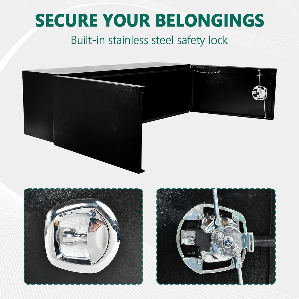 This truck bed toolbox is a game-changer! The sturdy steel construction keeps my tools secure, and the weather-resistant seal protects everything inside. The barn door design makes access super easy, and the lock adds peace of mind. Fits perfectly under my truck bed, saving space while keeping everything organized. Perfect for work gear or camping supplies—super practical and built to last!