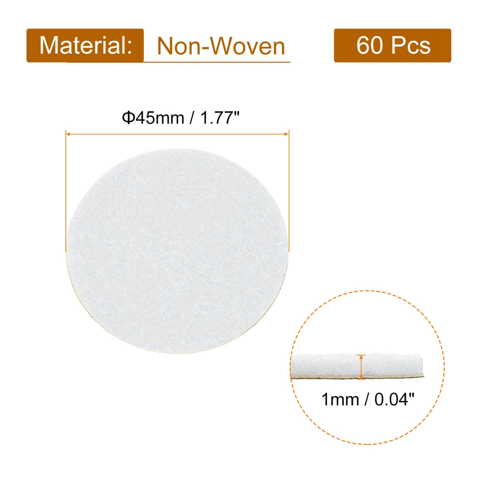 Description: Material: The round felt circle is made of non-woven fabric, which is moisture-proof, breathable, soft, lightweight and durable. It is very suitable for various handmade and DIY crafts, adding color and texture to your clothing and more. Pre-cut Design: The self-adhesive felt pads are pre-cut into circles, which brings convenience to your craft making, saving you time and energy in handmade projects, and saying goodbye to the trouble of cutting felt yourself! Easy to Use: Tear off the self-adhesive felt fabric sticker and stick it to the decoration. It is easy to remove and reusable. You can also sew it into the crafts, or use hot melt glue for better fixation. Application: Pre-cut felt pads are suitable for accessories, clothing, fabrics, decorative flowers, hairpins, brooches, collar pins, scrapbooks or other creative projects. They are also very suitable for handicrafts such as glass bricks or cards, paintings, etc. Specifications: Color: White Material: Non-Woven Diameter: 45mm/1.77" Thickness: 1mm/0.04" Package Contents: 60Pcs x Round Felt Circles