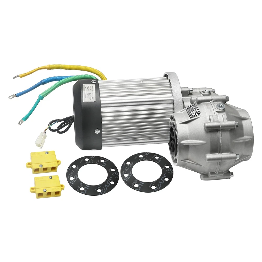 The Powerful 60v 2500w Unite motor brushless motor with differential gear box for Electric Golf Cart, ATV, Buggy, Quad, Car, Vehicles, Go Kart etc. Rated Speed: 5000RPM Max Speed: 6000RPM Rated Voltage: 60V Rated Power: 2500W Rated Current: 63A Gear Ratio: 12:1 Max Torque: 400N.m Shaft Spline: 6 Teeth Max Load: 1500lbs Protection grade: IP33 Insulation grade: F Weight of the motor: 36.8lbs Controller: 36 Tubes Limited Current: 110A Please check the size specs before purchase Package includes 1x 60v 2500w brushless motor with differential gearbox 1x 60v 2500w controller inkfrog terapeak