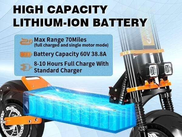 Wireless Headphones Bluetooth Noise Cancelling Stereo Earphones Over Ear Headset 17.09 USD 17.99 USD Free shipping 5% off Professional German Nail Clippers for Thick Nails, Stainless Steel Nail Clippers 12.99 USD Free shipping German Nail Clipper,Ultra Sharp Stainless Steel Nail Clippers for Men Women US 12.99 USD Free shipping Wireless WiFi Smart Video Doorbell Phone Door Ring Intercom Security Camera Bell 32.0 USD Free shipping Car Under LED Strip RGB DIY LED Strip Underbody System Neon Light Kit &Remote US 17.85 USD 18.79 USD Free shipping 5% off Product name: X8P black-orange Motor power: dual drive motor 60V8000W (4000W*2) Electric control power: built-in sine wave controller 50A*2 Battery capacity: Lithium battery 60V38.8A Input voltage: AC100V--250V 50-60Hz DC67.2V4A Drive mode: Dual drive Maximum speed: 100KG (speed 80KM/H) 70KG (speed 90KM/H) Product material: 6063 aluminum alloy Brake system: XOD oil brake Charging time: 10 hours with standard battery Maximum endurance: dual drive 70KM, single drive 120KM (flat road, 70KG) Climbing capacity: 30° Tires: 14 "off-road tires Atmosphere light: vertical pole with colorful atmosphere light Shock absorber: front hydraulic shock absorber, back spring Display screen: LED screen + finger hook Detailed dimensions Body: 1450*580*1320 After folding: 1470*280*500 Packing: 1550*320*700 MM Packing list: Folding scooter *1 ordinary charger *2 instruction manual *1 Multifunctional wrench *1 with seat *1 You may also like Screen Display Replacement for Lectric XP 2.0/3.0 Mountain Bike Electric Scoot3I 55.54 USD Free shipping 24V 60Ah 7S3P Li-ion Battery Pack High Capacity for E-Bike Electric Scooter New 69.99 USD Free shipping 3.7V 2500mAh Li-lon Top Button Rechargeable NCR Battery for LED Flashlight Lot 16.12 USD Free shipping Solar Power Bank 8000 mAh, Wireless Portable Charger, Solar Panel for Cell Phone 18.99 USD Free shipping Kids Outdoor Potting Set-5pc Trowel,Gardening Fork,Water sprinkler and 2planter 26.99 USD Free shipping Queen Size Cervical Pillow for Neck & Shoulder Pain Relief Sleeping Ergonomic US 39.99 USD Free shipping