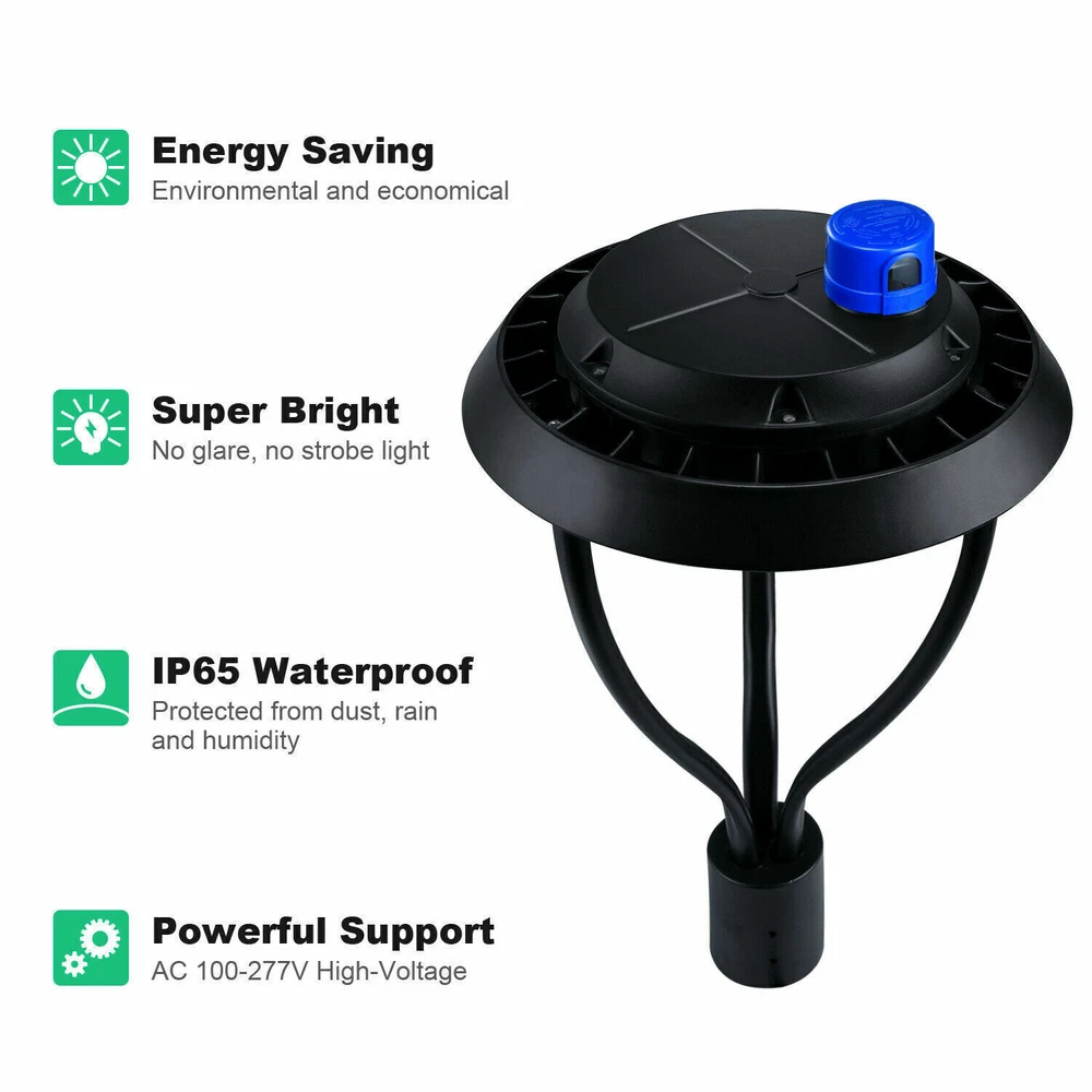 Product Description 60W LED Post Top Light Dusk to Dawn Security Light IP65 Waterproof Circular Lamp Easy to Install & Quality Certified: Via ETL DLC certified led post top area lighting fixtures are easy to install the post light and transform mount for Arm pole mounting with most adapter. Powerful Support & Energy Efficient: Our led post top lights pole mounting supports fit a 2 3/8-inch OD tenon & 3 inch pole(75mm). Besides, this led post top lamp support AC100-277V high-voltage current input, save up to 90% of electricity costs. PHOTOCELL ENABLED - LED Post Top Light comes with a dusk-to-dawn photocell sensor which detects ambient light and powers the LED on/off automatically. Energy up to 90% and make it great use for commercial lighting, gardens, courtyards, commercial street, roads, porches, school roads etc. High Heat Dissipation & Long Durable: This led post top pole lights used IP65 waterproof rating for all weather conditions-pure, aluminum die-cast housing provides excellent heat transfer, extending component life and preventing damage, low cost maintenance, great for outdoor applications such as city expressway, trunk road, factories, schools, garden, parking lots light, public parks etc. Super Bright & High Quality: This pole lights fixture have 120°beam angle,135lm/w SMD 3030 LED chips, total 8400 lumen, produces up to 135 lumen per watt, compared to other high pressure sodium lamps, high intensity discharge lamps, it's improved light utilization and uniformity, have a lifetime of 50,000 hours, environmentally friendly and energy efficient, save your money. 5 Year Warranty: We provide customers 5 year warranty and replacement within 30 days, but if our led post top pole lights does not work for some reason, please let us know that we respond within 24/7 hours. Feature: 1.Energy-saving, No UV or IR radiation. 2.Anti-shock, anti-moisture, no glare, no strobe light, protecting your eyes. 3.High intensity and stability, no maintenance cost. 4. Using high quality LED chips. 5.Universal voltage AC100-277V. 6.High Power Factor >0.9, Low THD Driver. 7.100% Die-cast aluminum gasketed enclosure. 8.Protective powder coating for lasting appearance. 9.IP65 rating for outdoor use. Note:Pole not including in package Product List 3* mounting tube 1* lamp 1* extending component 1* pack of mounting screws 1* Photocell sensor Specification: Rated Wattage:60W Base:2 Pins Wire Beam Angle: 120 ° Replace: MH 250W IP Rating: IP65 PF:>0.95 Shape :Circular led post top light Material :Metal Voltage :120 Volts Special Features :Instant On Shade Material :Metal Light Direction :Downlight Power Source :Air-powered Type of Bulb :LED LED quantity:60Pcs Luminous Flux :8100 Lumen Color Temperature :5000 Kelvin Customer feedback using the garden light section to show,Courtyard, park, ECT Easy to Install & Quality Certified: Via ETL DLC certified led post top area lighting fixtures are easy to install the post light and transform mount for Arm pole mounting with most adapter. Powerful Support & Energy Efficient: Our led post top lights pole mounting supports fit a 2 3/8-inch OD tenon & 3 inch pole(75mm). Besides, this led post top lamp support AC100-277V high-voltage current input, save up to 90% of electricity costs. PHOTOCELL ENABLED - LED Post Top Light comes with a dusk-to-dawn photocell sensor which detects ambient light and powers the LED on/off automatically. Energy up to 90% and make it great use for commercial lighting, gardens, courtyards, commercial street, roads, porches, school roads etc. High Heat Dissipation & Long Durable: This led post top pole lights used IP65 waterproof rating for all weather conditions-pure, aluminum die-cast housing provides excellent heat transfer, extending component life and preventing damage, low cost maintenance, great for outdoor applications such as city expressway, trunk road, factories, schools, garden, parking lots light, public parks etc. Super Bright & High Quality: This pole lights fixture have 120°beam angle,135lm/w SMD 3030 LED chips, total 8400 lumen, produces up to 135 lumen per watt, compared to other high pressure sodium lamps, high intensity discharge lamps, it's improved light utilization and uniformity, have a lifetime of 50,000 hours, environmentally friendly and energy efficient, save your money. 5 Year Warranty: We provide customers 5 year warranty and replacement within 30 days, but if our led post top pole lights does not work for some reason, please let us know that we respond within 24/7 hours. Feature: 1.Energy-saving, No UV or IR radiation. 2.Anti-shock, anti-moisture, no glare, no strobe light, protecting your eyes. 3.High intensity and stability, no maintenance cost. 4. Using high quality LED chips. 5.Universal voltage AC100-277V. 6.High Power Factor >0.9, Low THD Driver. 7.100% Die-cast aluminum gasketed enclosure. 8.Protective powder coating for lasting appearance. 9.IP65 rating for outdoor use. Product List 3* mounting pole 1* lamp 1* extending component 1* pack of mounting screws 1* Photocell sensor Specification: Rated Wattage:60W Base:2 Pins Wire Beam Angle: 120 ° Replace: MH 250W IP Rating: IP65 PF:>0.95 Shape :Circular led post top light Material :Metal Voltage :120 Volts Special Features :Instant On Shade Material :Metal Light Direction :Downlight Power Source :Air-powered Type of Bulb :LED LED quantity:60Pcs Luminous Flux :8100 Lumen Color Temperature :5000 Kelvin Customer feedback using the garden light section to show,Courtyard, park, ECT About Us Payment Shipping Returns Contact Us SHENZHEN NUOGUAN TECHNOLOGY CO. LTD founded in 2010. We are high-technology comany specialized in manufacture Commercial and industrial LED light. Advanced production equipment and excellend R&D ability help us to combining service ,production sell together provide top-level products to our customers. 1. Payment is expected within 7 days of auction close. Or Unpaid Items will be forfeited per eBay . 2. Taxes may be applicable at checkout as st