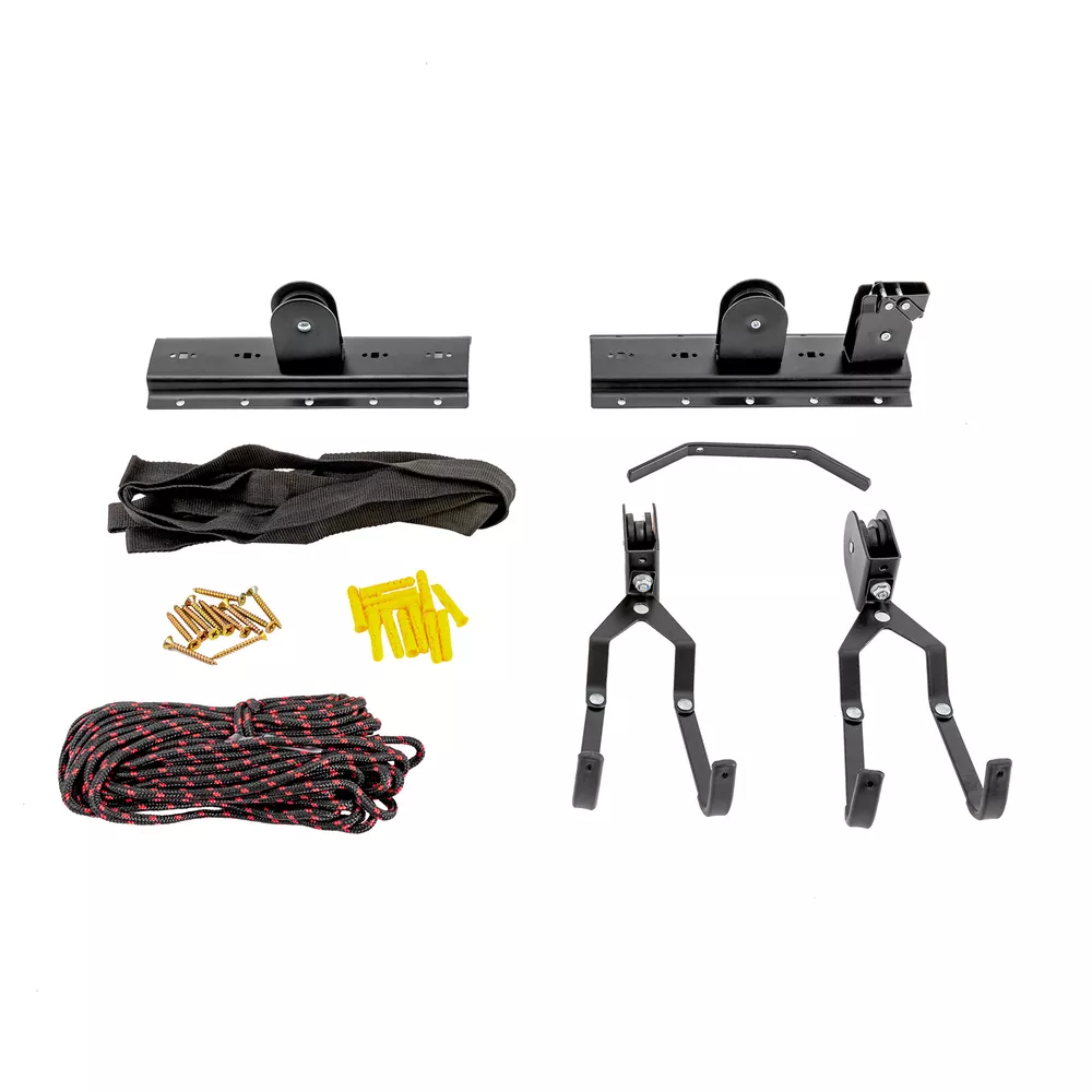 Bike Hoist for Garage Ceiling Mount Bicycle Lifting Pulley System w/ Storage Hook, Set of Bike Hangers for Garage Bike Storage Key Highlights ★ Quick and Easy to Use: Our bicycle lifting pulley system and lever principle make it easy to lift the bicycle. All you need to do is slide the hook under the seat and handlebars, and then the bike will be lifted safely with heavy pulleys and ropes. ★ Versatility: Our bike hooks can be mounted anywhere on the ceiling. And it can hang almost any type of bicycle, such as mountain bike, road bike and off-road vehicle. ★ Sturdy and Durable: Our product is made of high-quality steel, making it very strong and durable with a long service life. ★ Easy to Carry and Store: Its detachable and foldable design makes it easy to carry and store. Therefore it 60kg Bicycle Bike Lift Hoist Ceiling Storage Hanger Pulley Rack Garage + Hooks Bike Hoist for Garage Ceiling Mount Bicycle Lifting Pulley System w/ Storage Hook , Set of Bike Hangers for Garage Bike Storage Key Highlights ★ Quick and Easy to Use: Our bicycle lifting pulley system and lever principle make it easy to lift the bicycle. All you need to do is slide the hook under the seat and handlebars, and then the bike will be lifted safely with heavy pulleys and ropes. ★ Versatility: Our bike hooks can be mounted anywhere on the ceiling. And it can hang almost any type of bicycle, such as mountain bike, road bike and off-road vehicle. ★ Sturdy and Durable: Our product is made of high-quality steel, making it very strong and durable with a long service life. ★ Easy to Carry and Store: Its detachable and foldable design makes it easy to carry and store. Therefore it can be easily stored in a small corner when not in use and can be carried around for outdoor work. ★ 132 Lbs Capacity : The dense thickened fiber sling and high-quality pulleys make it hold up to 132lbs, accommodating most bikes. ★ Easy to Install: The simple pulley structure and complete accessories make the bike hoist easy for you to install. You can do the installation by yourself independently. Specifications 1) Coated Hooks: Hooks are designed with a protective coating to protect your bike from scratches 2) High-Quality Material Lanyard: The lanyard made of this fiber material is not easy to deform and break, very strong with a longer life. Application It can be used to lift most domestic and commercial bicycles for space saving as well as repair, display, and maintenance and is also an ideal gift for cyclists. It can also be used to hang anything, including seasonal yard equipment, holiday decorations and camping tools. Specification Material: Steel Color: Black Style: Heavy Duty Length of Hooks: 17cm/6.7in Load Bearing: 60kg/132LBS Package Size: 26*13*10.5/10.2*5.1*4.1in Product Size: 12*6.5*4cm/4.7*2.5*1.5in Gross Weight: 1.65kg/3.6lbs Net Weight: 1.4kg/3.0lbs Package Included 2* Hanging Plates 2* Hook Pulleys 1*Rope Other Accessories for Assembly Payment Delivery details Terms of sales About us Contact us Payment We accept ebay payment 。 Fees such as import duties, taxes are not included in the item price or shipping costs. These charges are the buyer's responsibility. Delivery details Shipping: 2-9 working days to: USA Terms of sales We maintain high standards of excellence and strive for hundred percent customer satisfaction. Feedback is very important to us. We hope that you contact us immediately before you give neutral or negative feedback, so that we can address your concerns. It is impossible to address issues if we do not know about them! About us Your satis faction is our ultimate goal. We work hard to earn your trust and future business. Our certified technicians have tested each item before shipping. The unit comes with 1 year limited warranty on all manufacturing defects. a) If you receive a defective item, you may return it or ask for a discount. Please contact us within 14 days after you receive the package. b) What you returned must be intact and in its original packaging as re? u. Customer is responsible for shipping costs of the returned item. c) We will cover the cost of shipping back t with the shipping rate indicated in the registration page. We will send you a new unit or refund the full payment you paid. Thank you. Contact us Business Hour Business Hour: Monday To Friday: 8:30 AM to 5:00 PM (Beijing China time) Due to time zones, our reply to your questions may not be immediately. But within above working time, we will reply your email within 24 hours. If it's non-workdays, please kindly be patient and wait till Monday. Please contact us with ebay message. Please feel free to contact us if you have any questions. Monday To Friday: 8:30 AM to 5:00 PM (Beijing China time) Due to time zones, our reply to your questions may not be immediately. But within above working time, we will reply your email within 24 hours. If it's non-workdays, please kindly be patient and wait till Monday. Please contact us with ebay message. Please feel free to contact us if you have any questions.