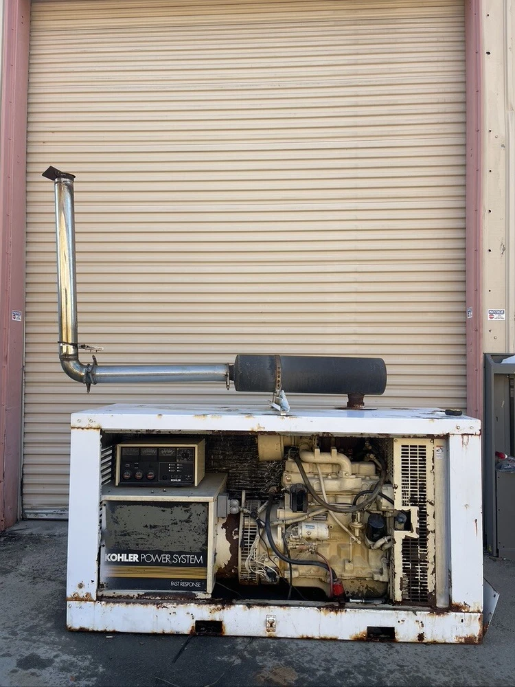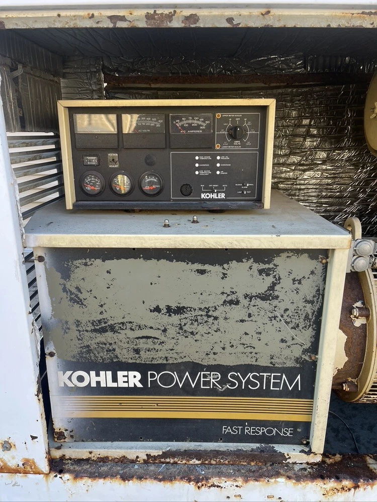 Up for sale is a used genuine US Surplus 60kw Diesel Generator. Item has been tested and does operate, we removed from working condition. With only 600 hours on the unit, it was used as the power plant for a Military MRI trailer. This unit is incased in a steel structure, and the structure has rust due to being exposed to the elements. KW: 60 Manufacturer: Kohler Engine Manufacturer: John Deere Engine Model: 4039TF004 Package Model: 60R0ZJZ1 HP: 110 Voltage: 120/240 Phase: 3 Hours: 600 Year: unknown H1