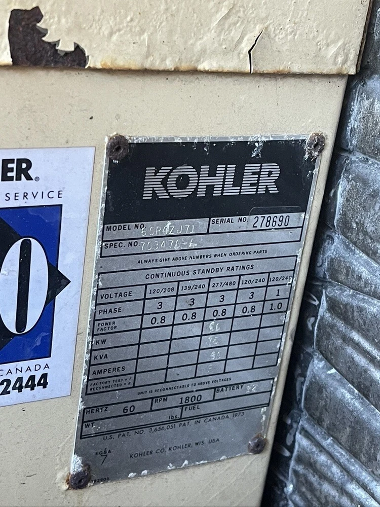 60kw Kohler 60R0ZJ71 Diesel Generator