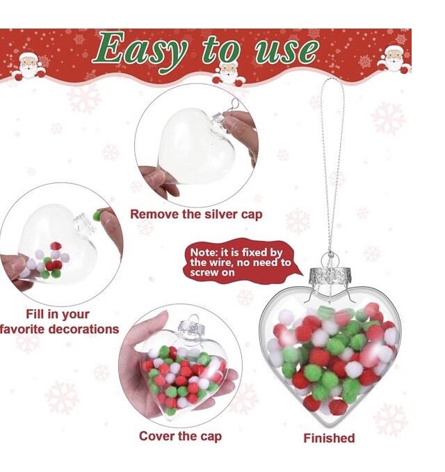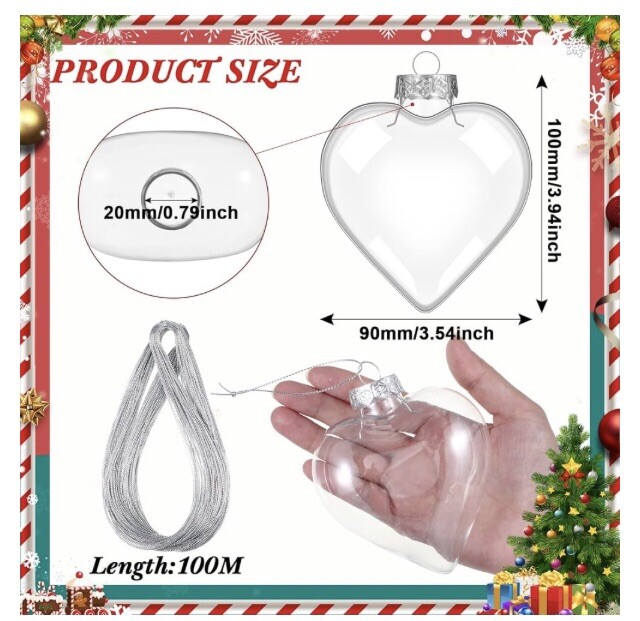 Add a touch of love to your holiday decor with these Sosation heart-shaped ornaments. The set includes 60 clear plastic ornaments, perfect for crafting or hanging on a tree. The ornaments feature a beautiful heart design, making them a great addition to any Christmas decor. The size of the ornaments can be seen in the photo dimensions, and they come in a set of 60 pieces. Get ready to spread holiday cheer with these charming ornaments!